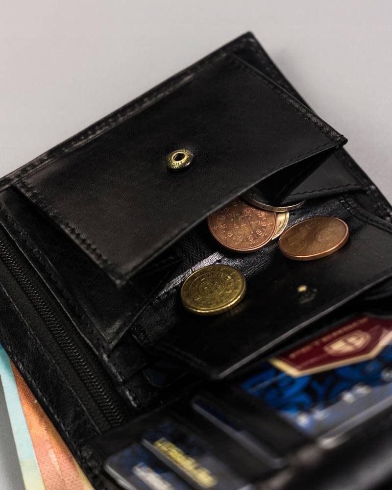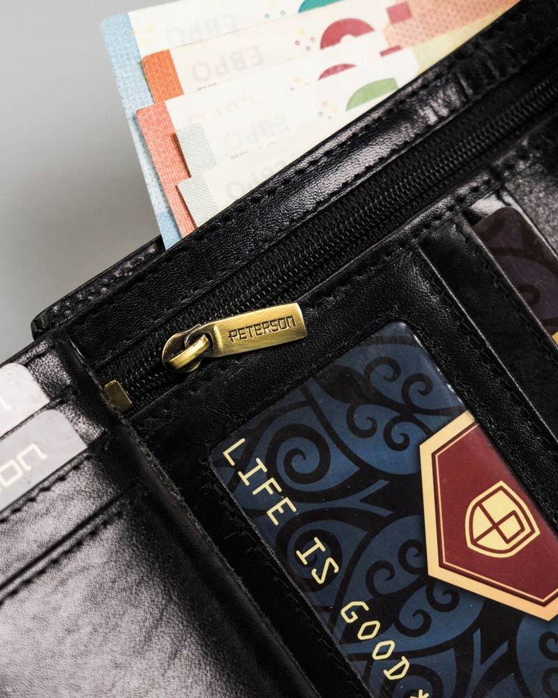 - banknoty schowasz do 3 kieszeni, jedna z nich jest otwarta, pozostałe dwie zapinane na suwak.