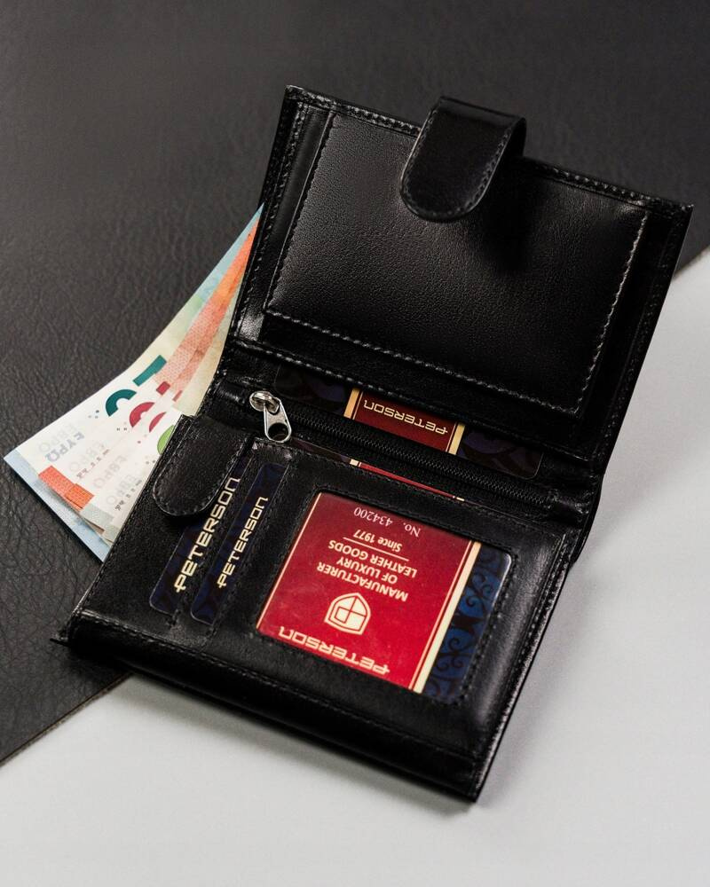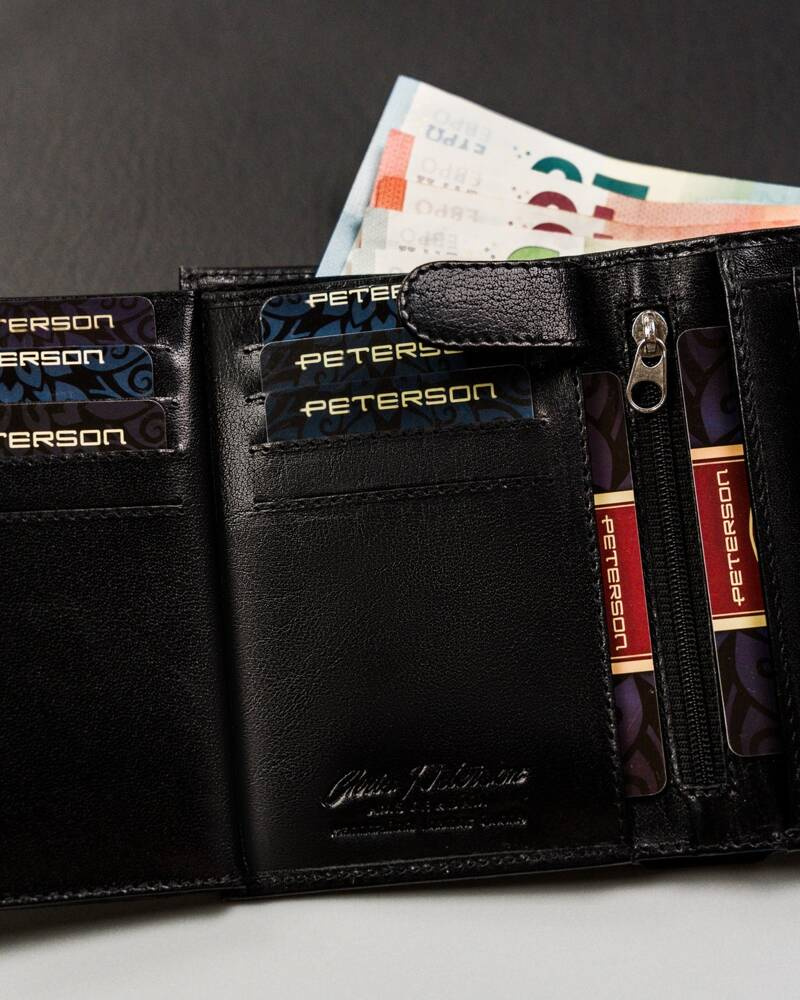 - Jakościowe pudełko | Portfel dodatkowo zapakowany jest w oryginalne pudełko marki Peterson®.