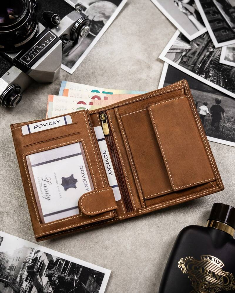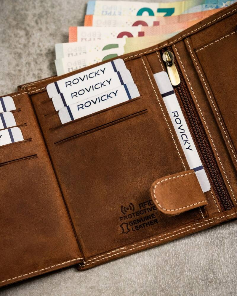 Posiada rozbudowane wnętrze – będzie idealnym wyborem właśnie dla Ciebie, jeżeli na co dzień nosisz dokumenty w dużym formacie jak np. dowód rejestracyjny. Ponadto zmieścisz w nim pokaźne ilości kart oraz gotówki.