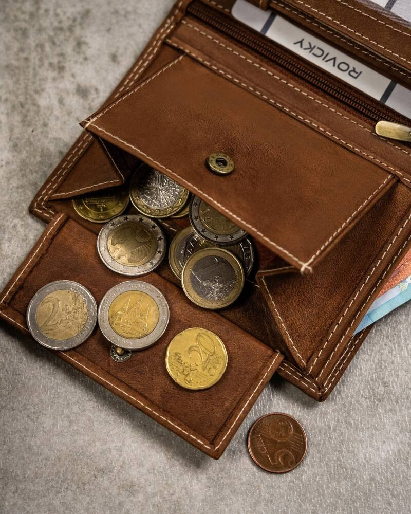 W kieszeniach na banknoty i monety zmieścisz satysfakcjonującą ilość gotówki.
