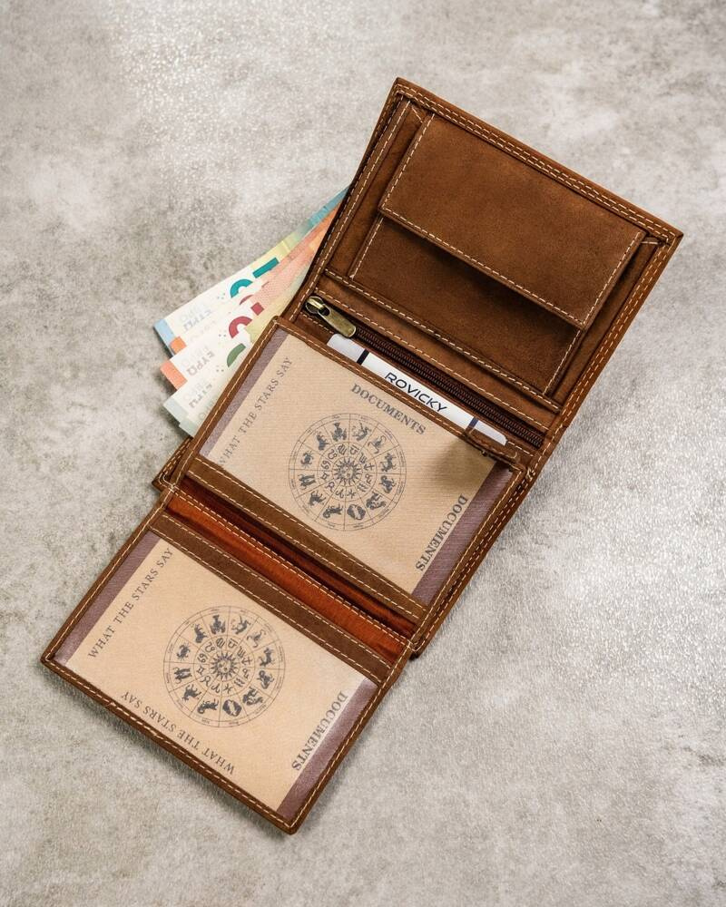 - banknoty schowasz do 2 otwartych, szerokich przegródek, wykończonych materiałową podszewką.