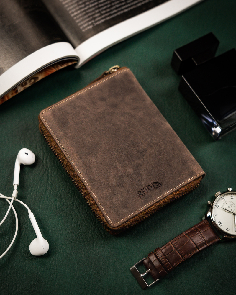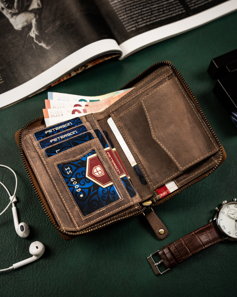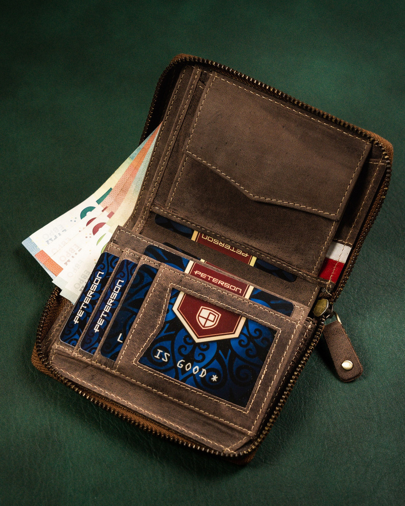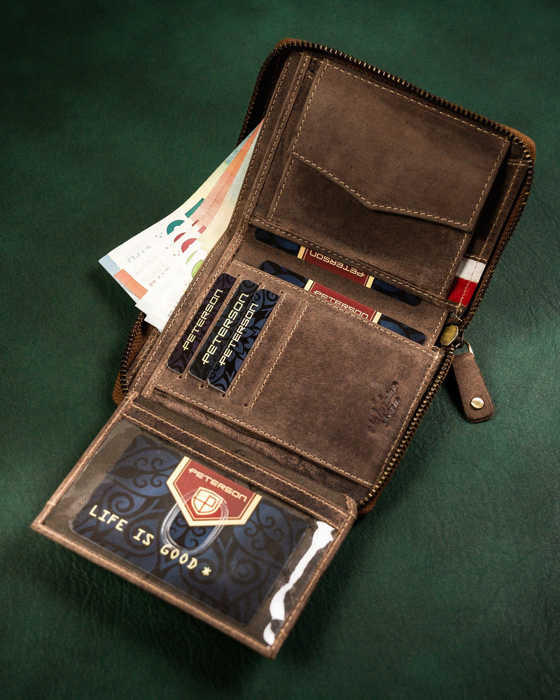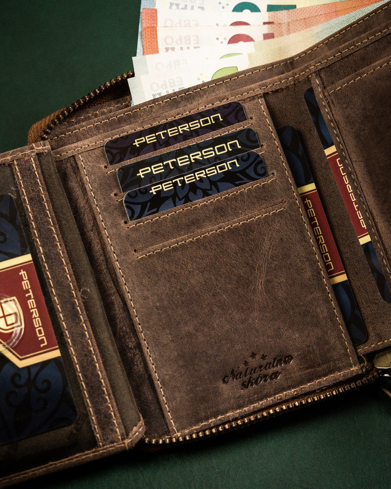 Duży portfel męski z nubukowej skóry naturalnej – Peterson