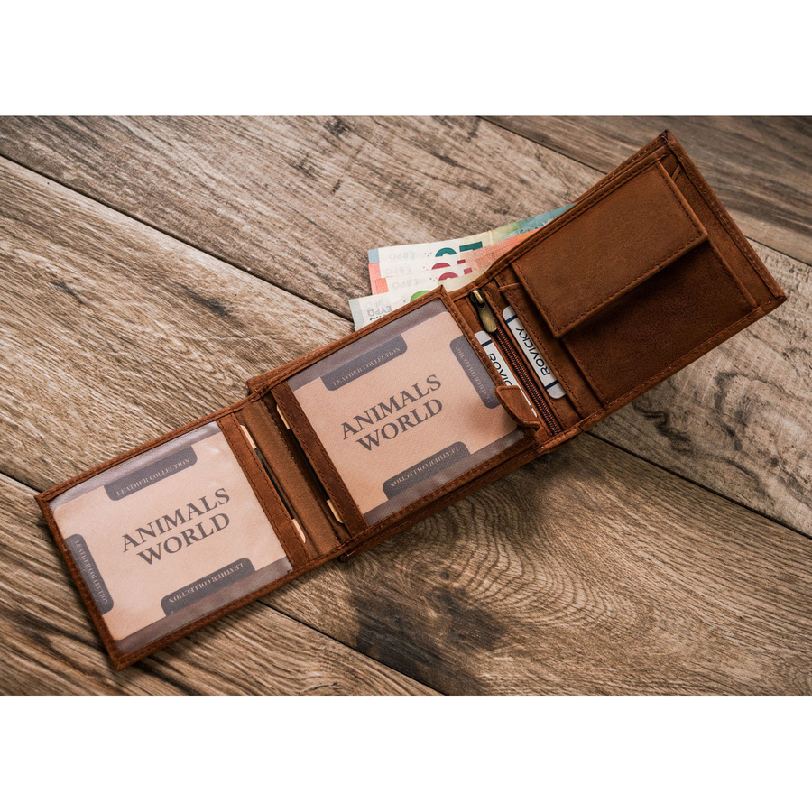 Duży portfel męski z nubukowej skóry naturalnej w brązowym kolorze – Always Wild