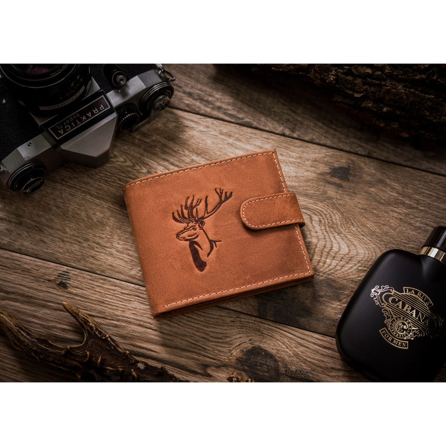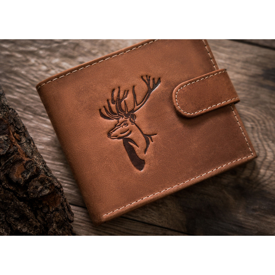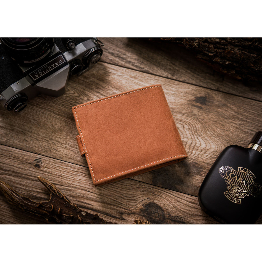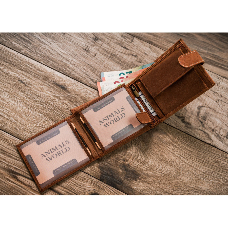 Duży portfel męski z nubukowej skóry naturalnej w brązowym kolorze zamykany zatrzaskiem – Always Wild