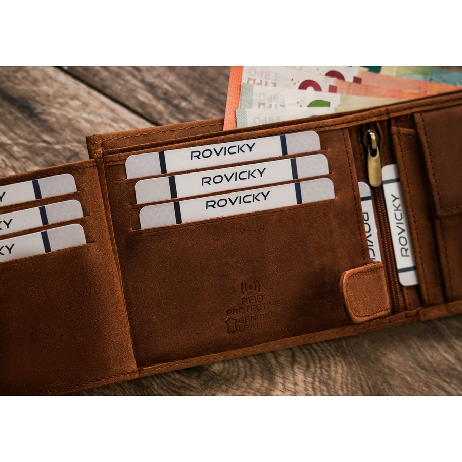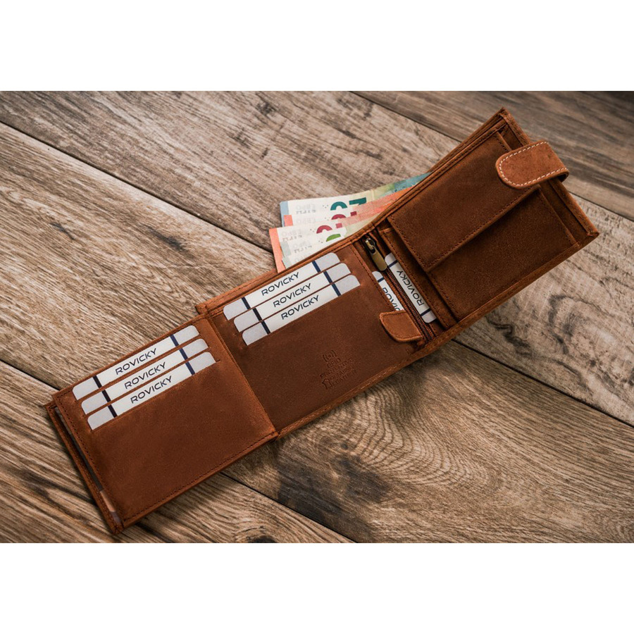 Posiada rozbudowane wnętrze – będzie idealnym wyborem właśnie dla Ciebie, jeżeli na co dzień nosisz dokumenty w dużym formacie jak np. dowód rejestracyjny. Ponadto zmieścisz w nim pokaźne ilości kart oraz gotówki.