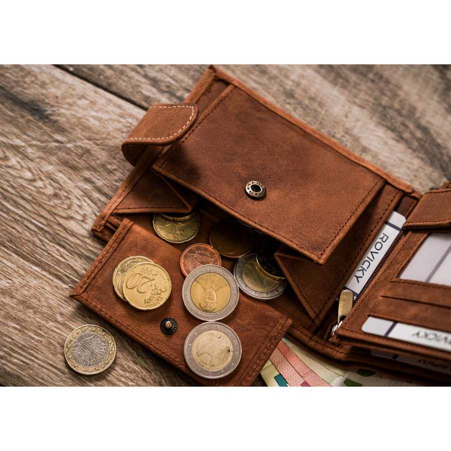 W kieszeniach na banknoty i monety zmieścisz satysfakcjonującą ilość gotówki.