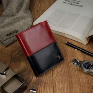 - Duży portfel o klasycznej stylistyce. Model w orientacji pionowej zamykany na zatrzask;
