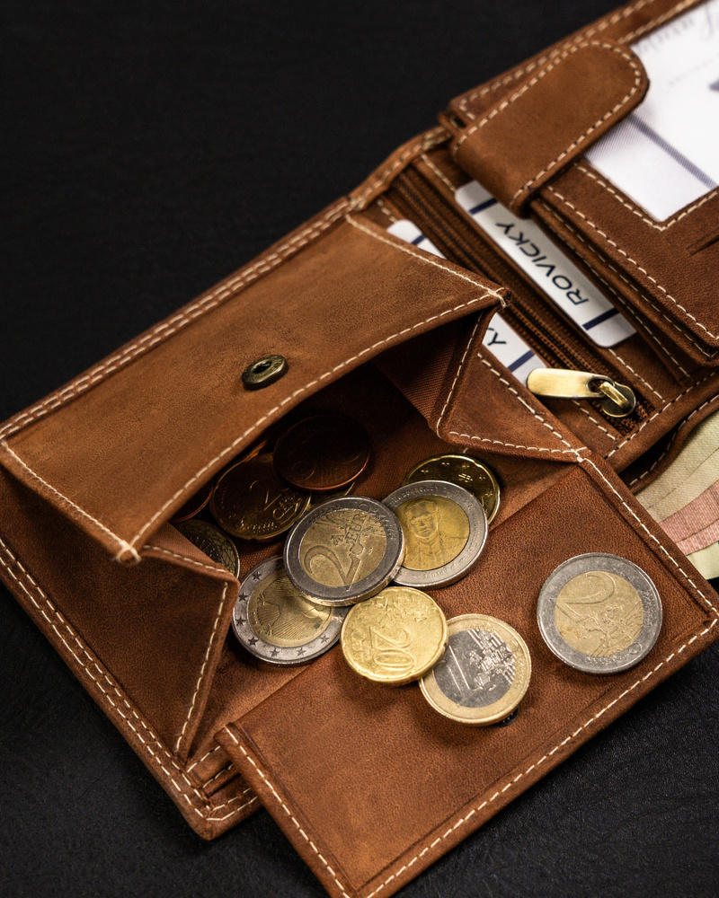 W kieszeniach na banknoty i monety zmieścisz satysfakcjonującą ilość gotówki.
