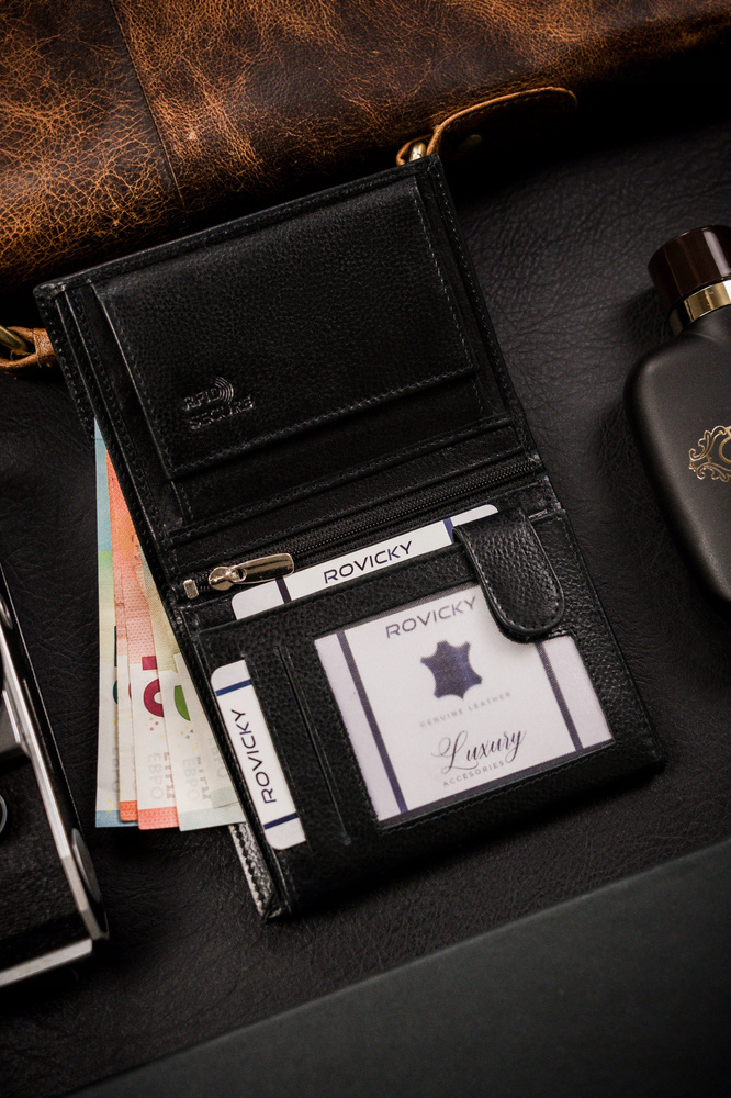 Duży portfel męski ze skóry naturalnej bez zapięcia – Rovicky