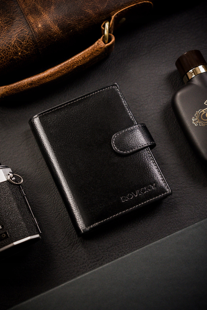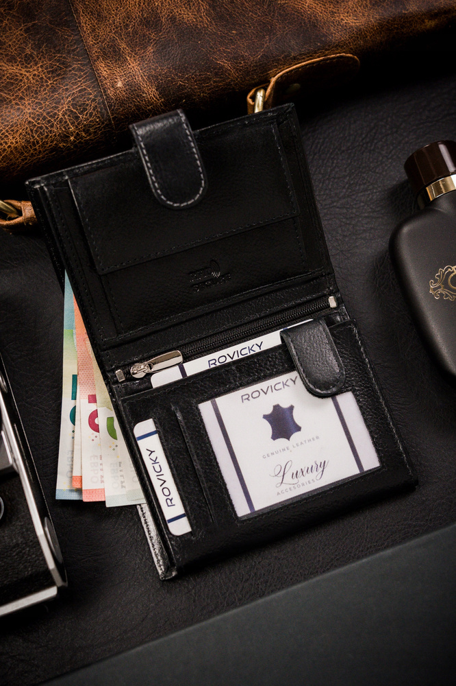 Duży portfel męski ze skóry naturalnej w orientacji pionowej – Rovicky