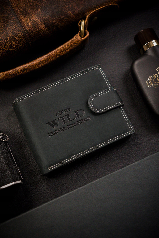 Duży portfel męski ze skóry naturalnej zapinany na zatrzask – Always Wild