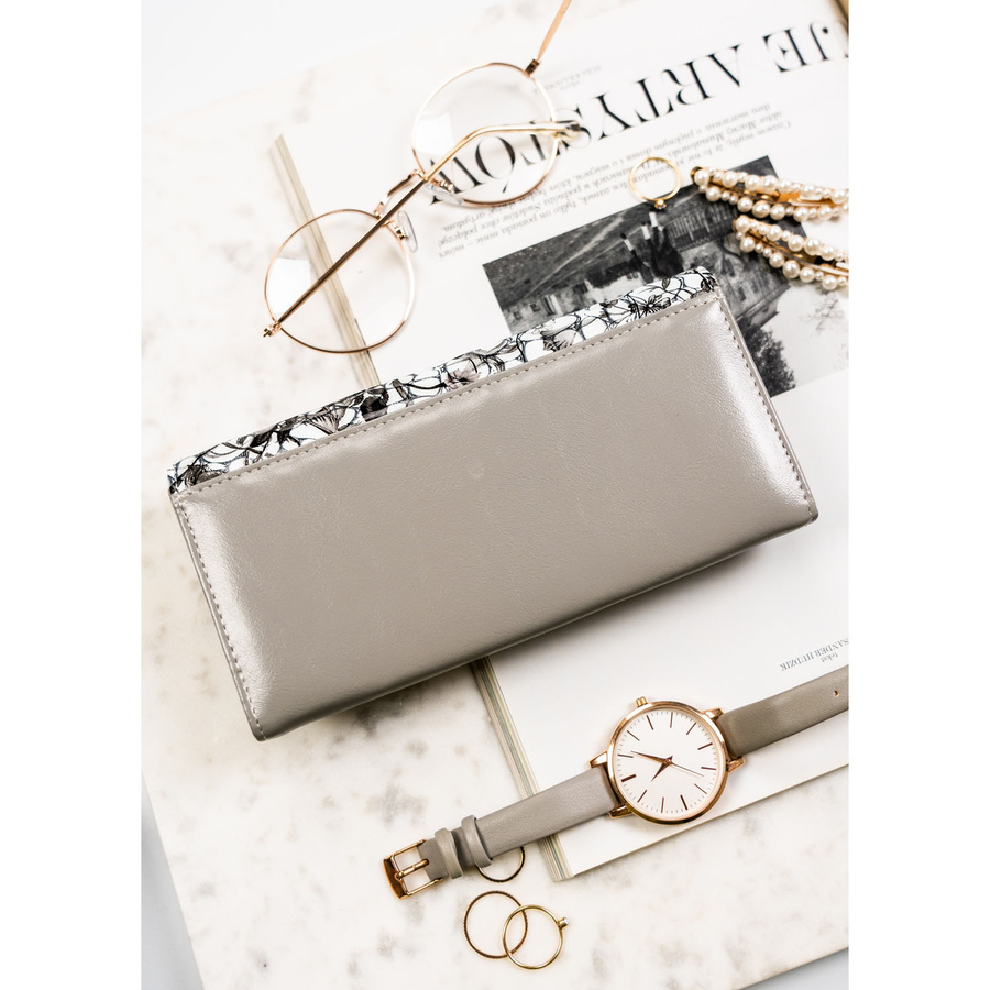 - Bogaty, kwiatowy motyw na froncie portfela przyciąga wzrok już od pierwszego spojrzenia. Czarne kwiaty na białym tle tworzą artystyczny design, który podkreśla szykowny charakter tego dodatku.