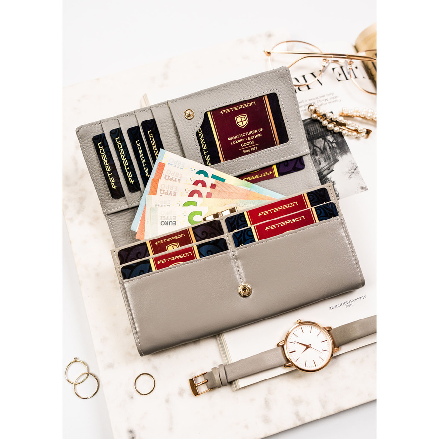 - 3 duże przegródki na banknoty, w których można z łatwością zmieścić i wygodnie posortować dużą ilość gotówki.
