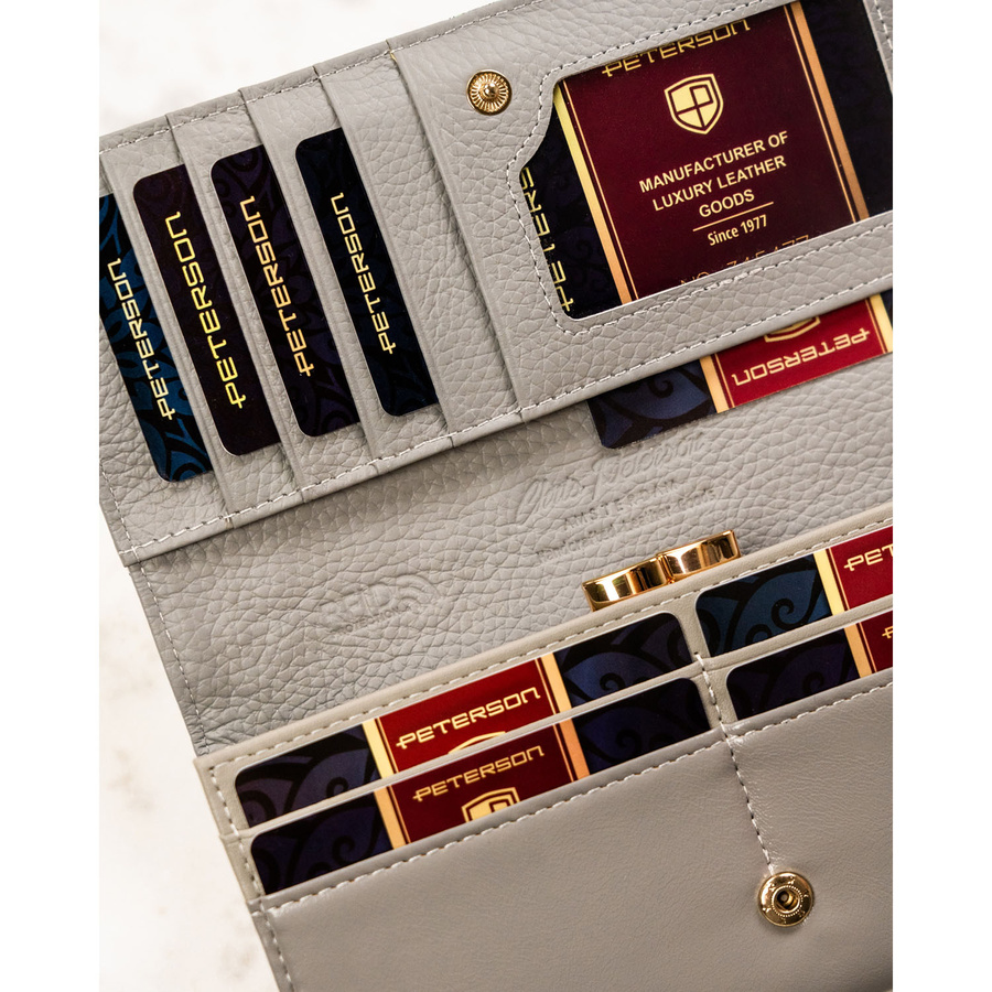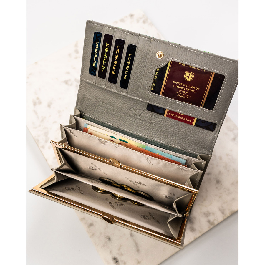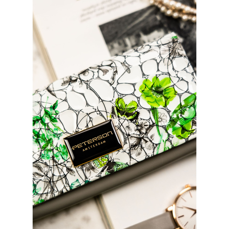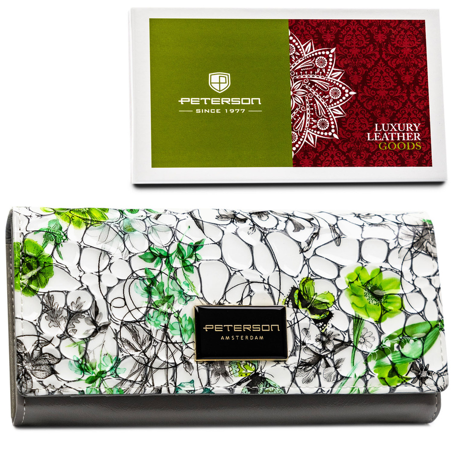 Duży, poziomy portfel damski ze skóry naturalnej w kwiatowy wzór – Peterson