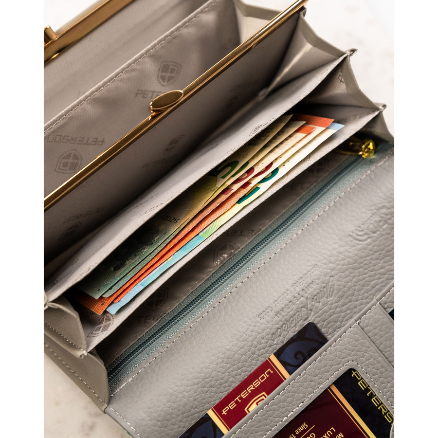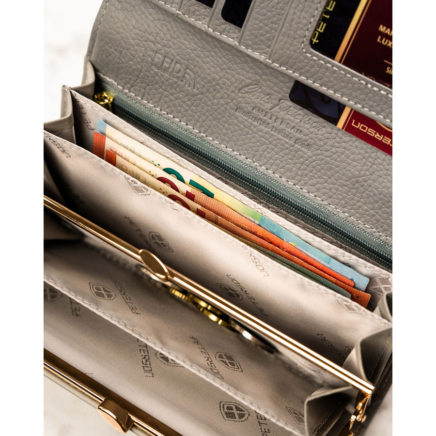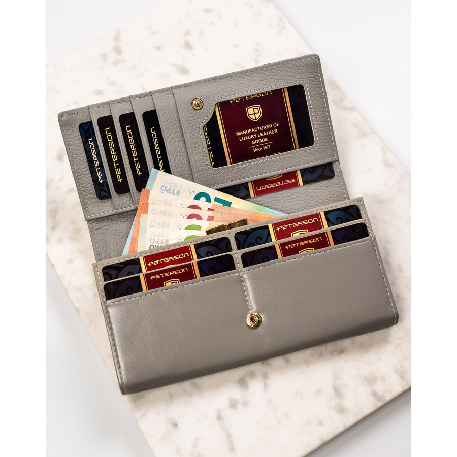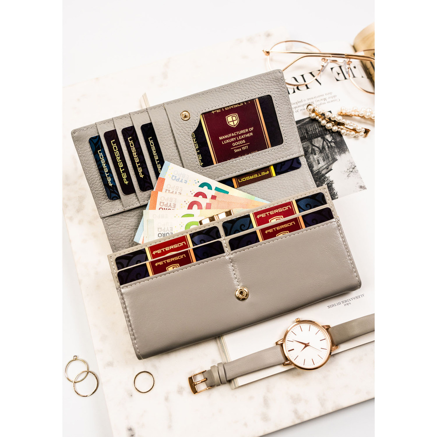 Duży, poziomy portfel damski ze skóry naturalnej w kwiatowy wzór – Peterson