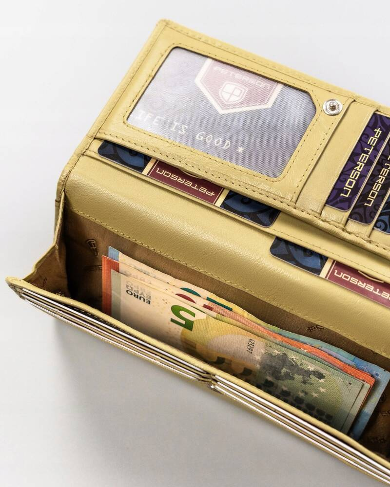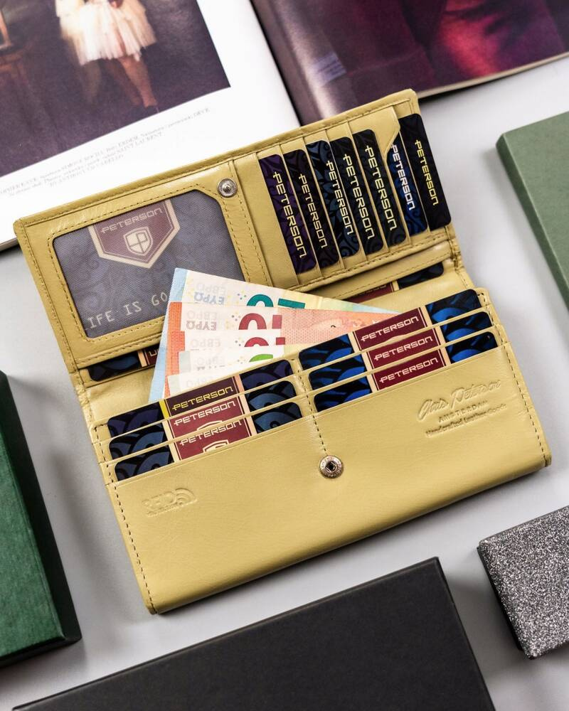 Duży, skórzany portfel damski na bigiel i zatrzask – Peterson