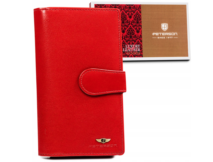 Duży, skórzany portfel damski na zamek i zatrzask – Peterson