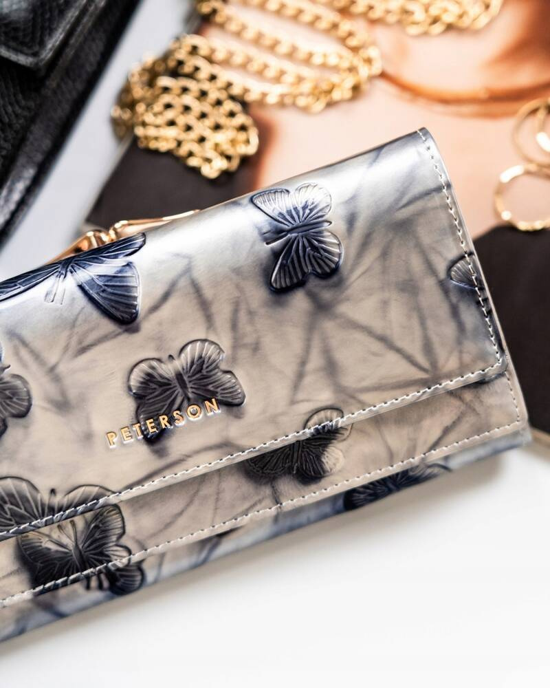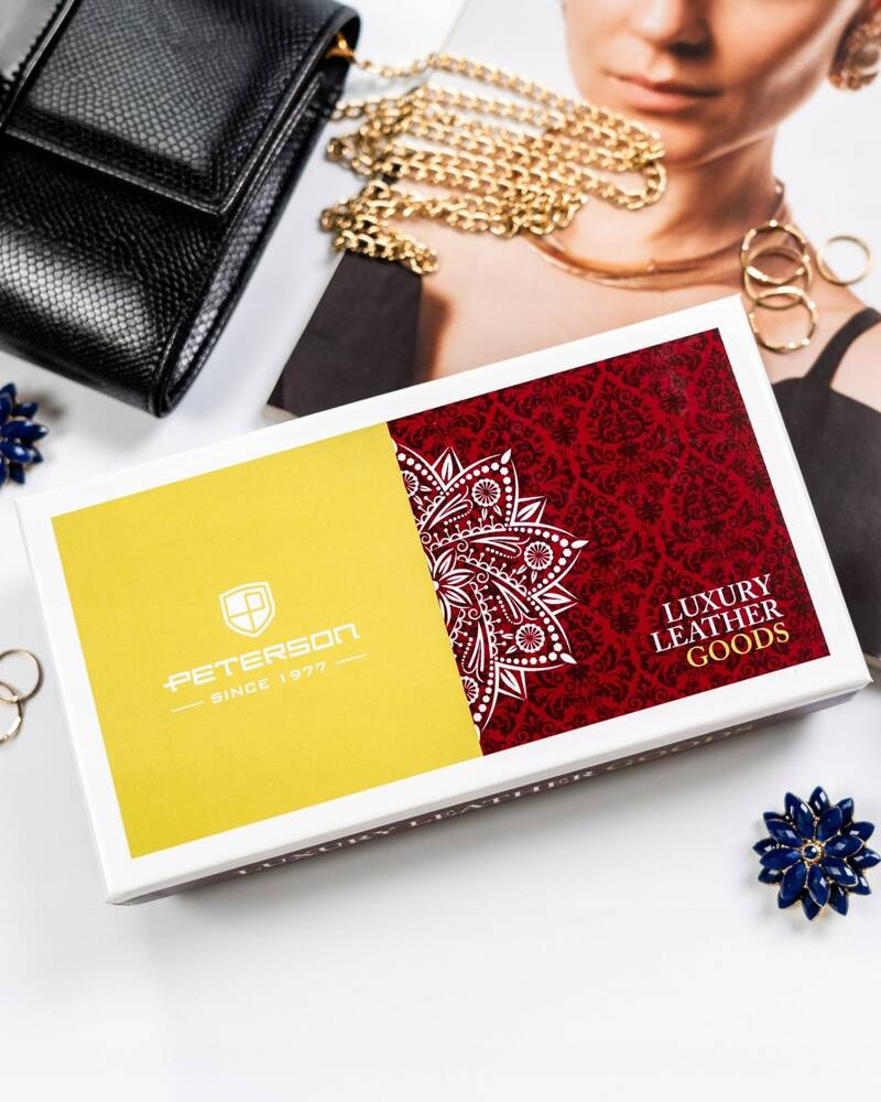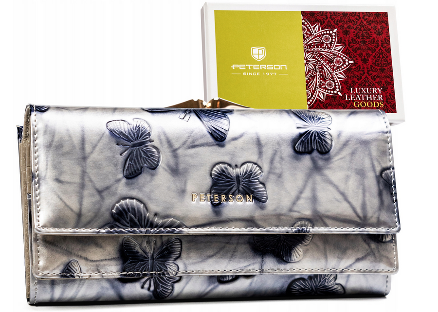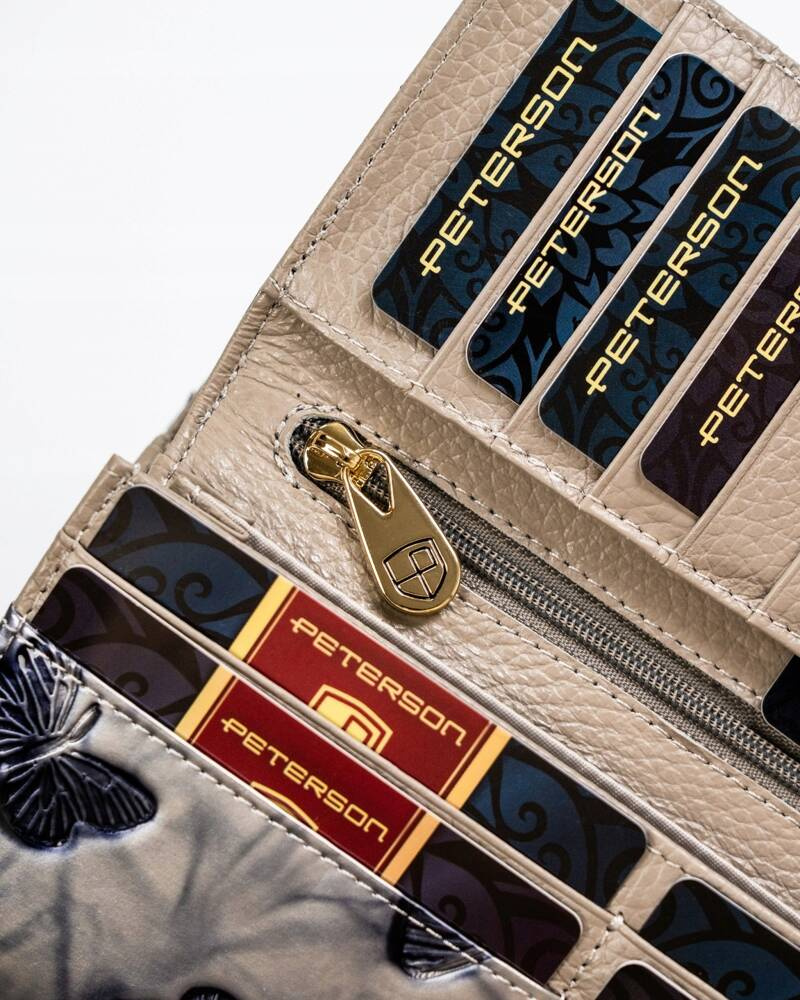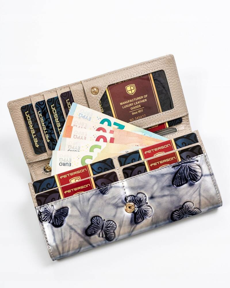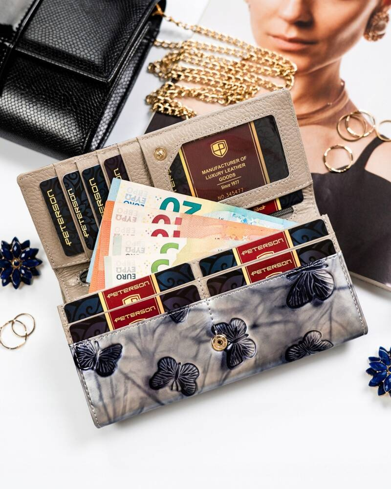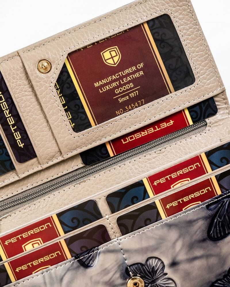 Duży, skórzany portfel damski na zatrzask i bigiel – Peterson