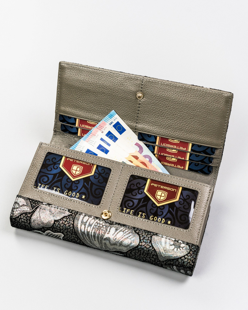 - banknoty zmieścisz w 2 pojemne, otwarte przegródki.