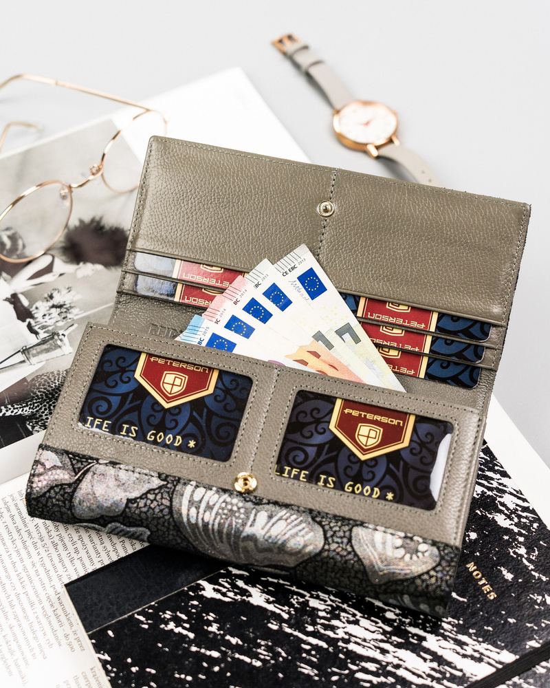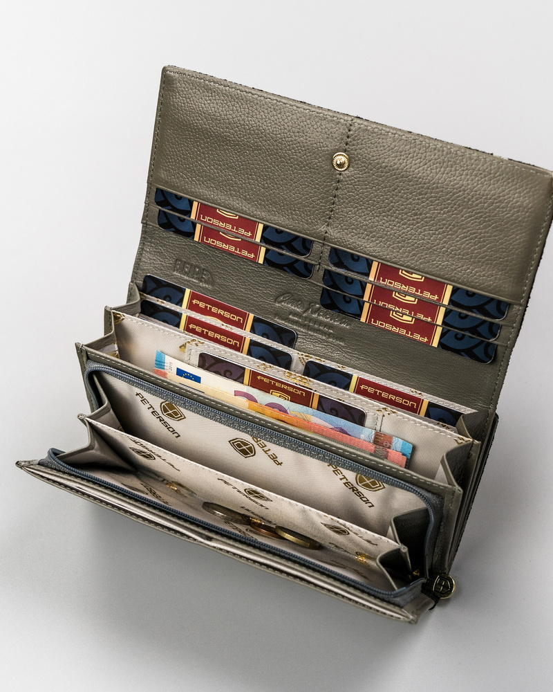 Duży, skórzany portfel damski na zatrzask – Peterson