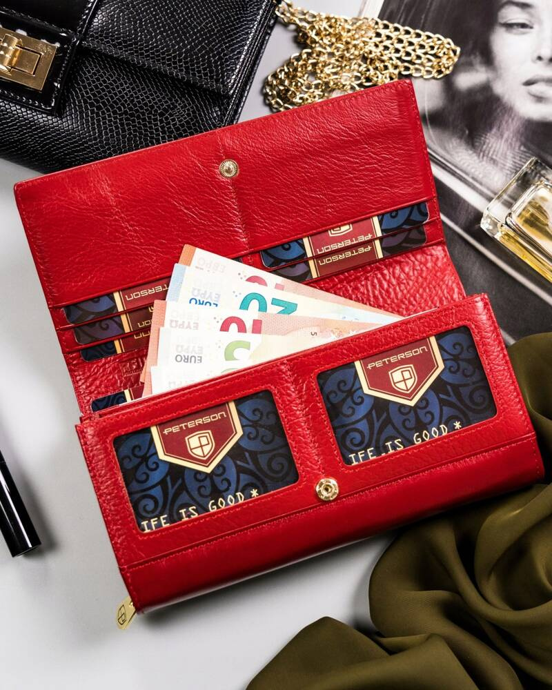 Duży, skórzany portfel damski na zatrzask – Peterson