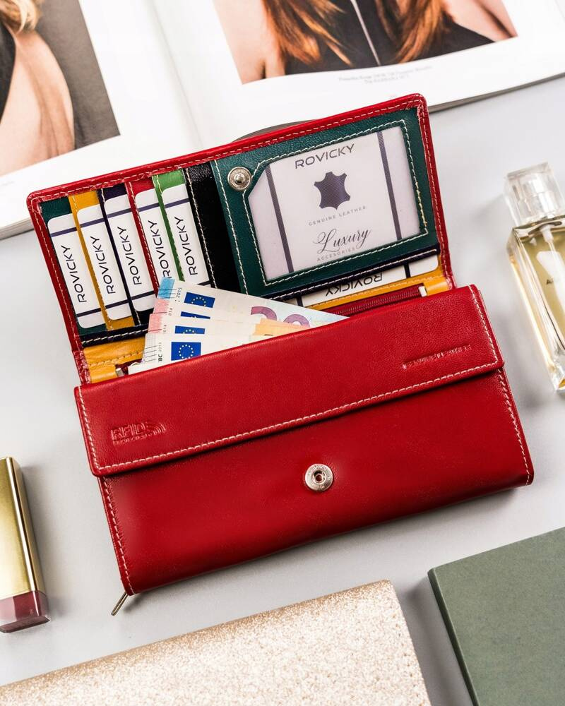 Duży, skórzany portfel damski na zatrzask – Rovicky