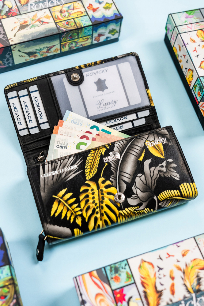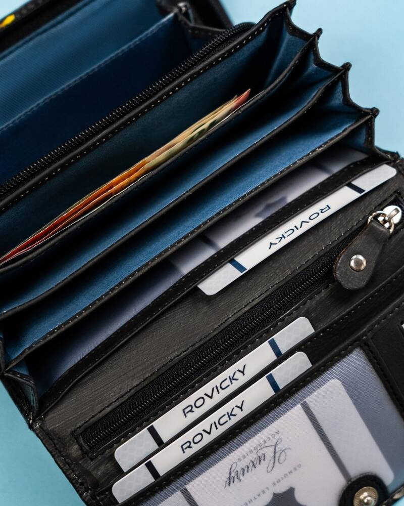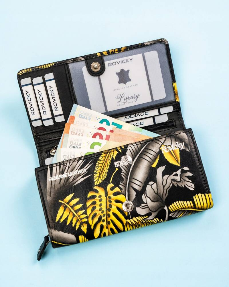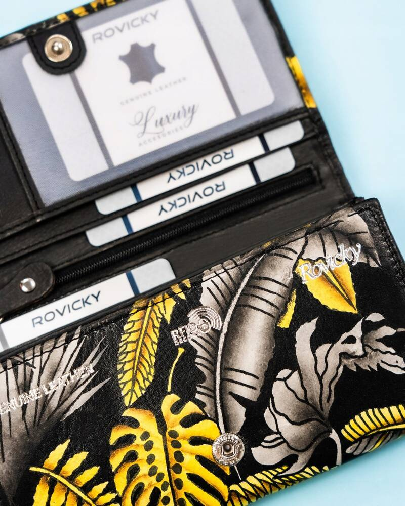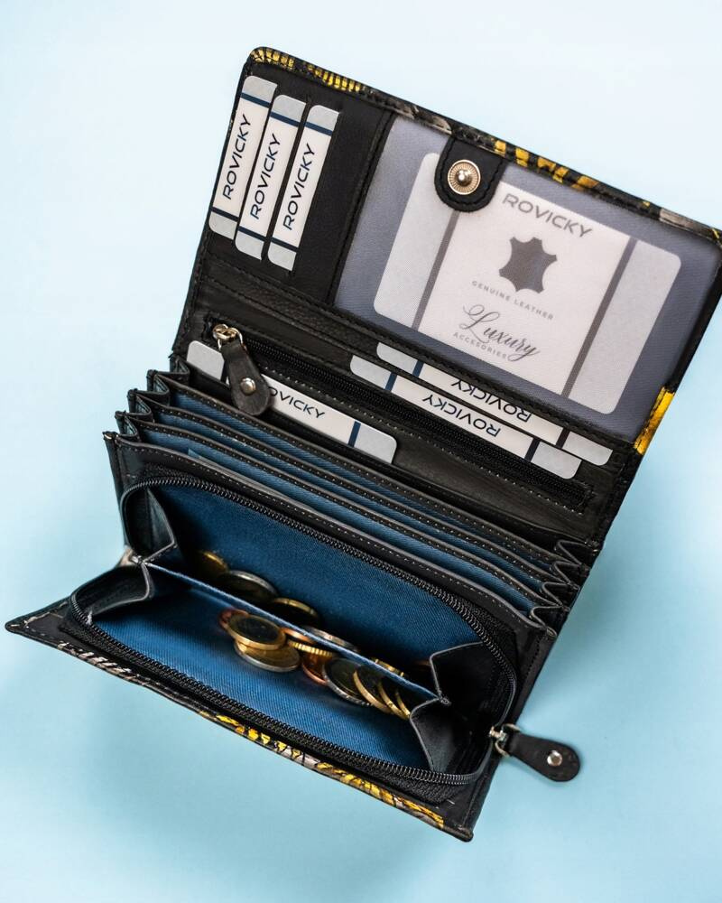 Duży, skórzany portfel damski na zatrzask – Rovicky