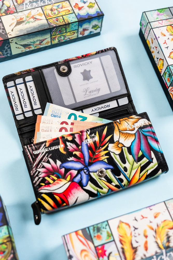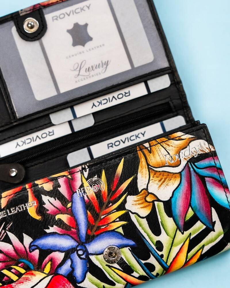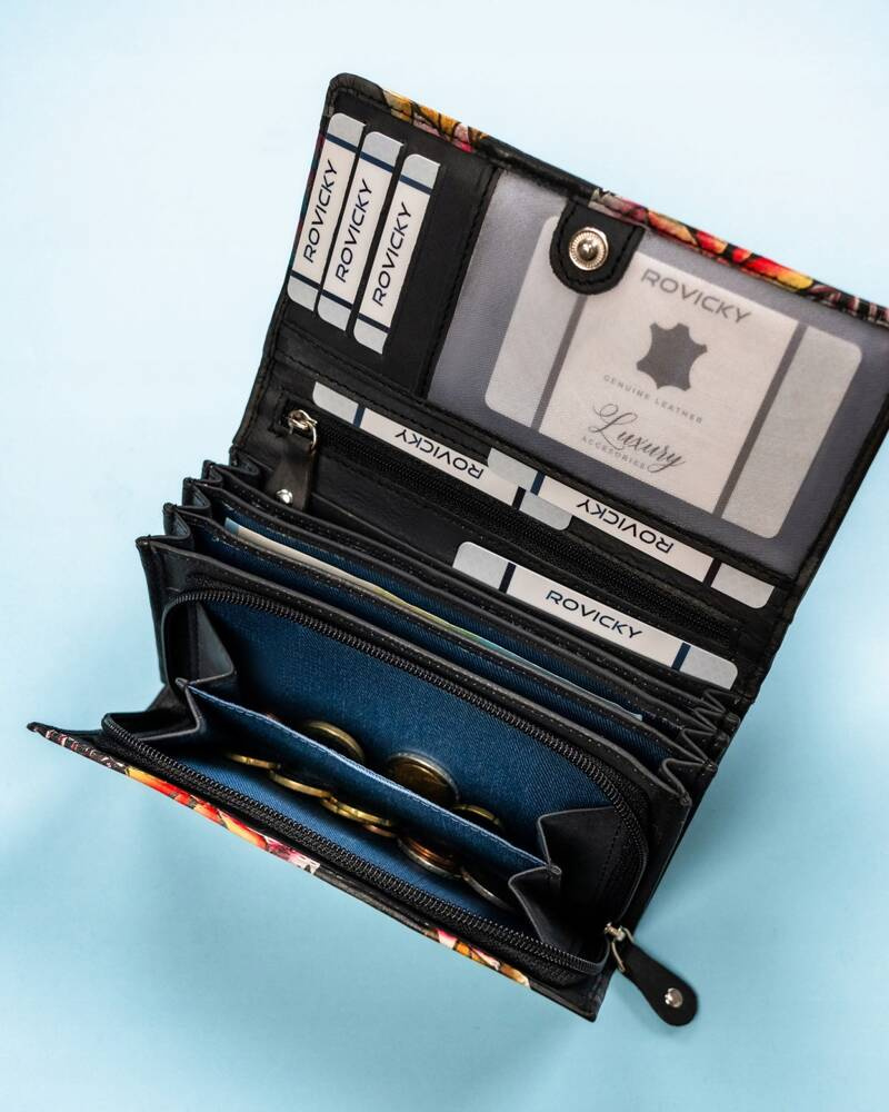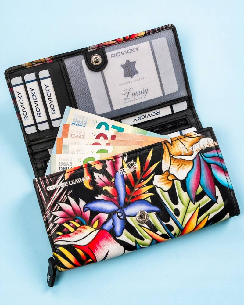 Duży, skórzany portfel damski na zatrzask – Rovicky