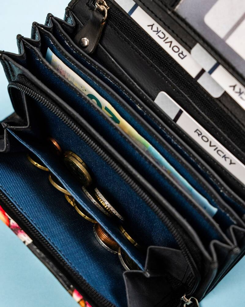 Dzięki liczebności schowków portfel idealnie nada się do przechowywania kilku walut. Bez problemu możesz je rozdzielić, aby nie uległy pomieszaniu.