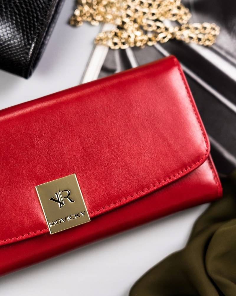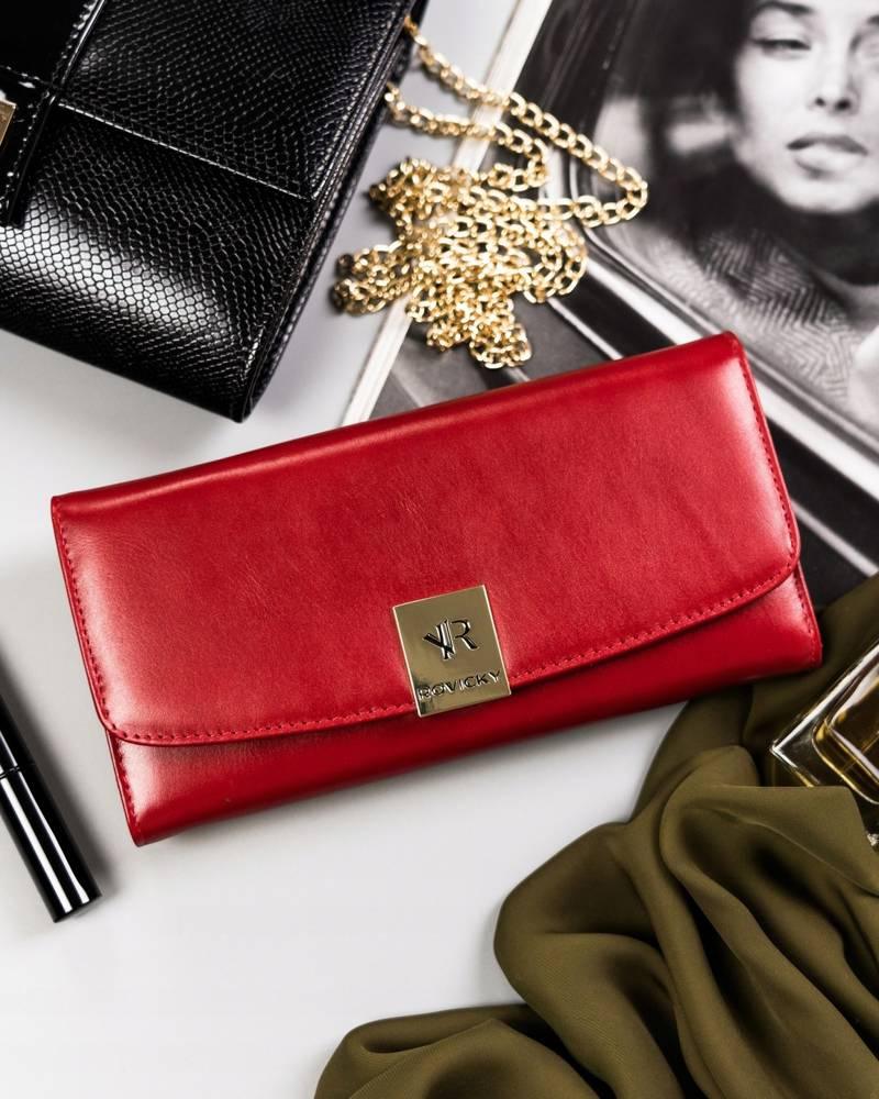 Duży, skórzany portfel damski na zatrzask z systemem RFID – Rovicky