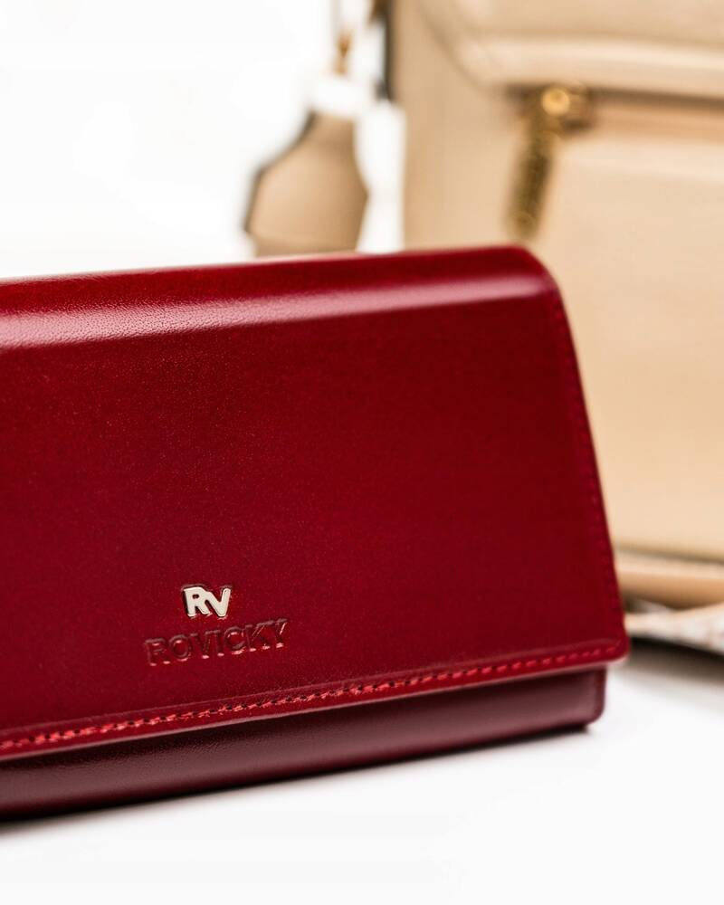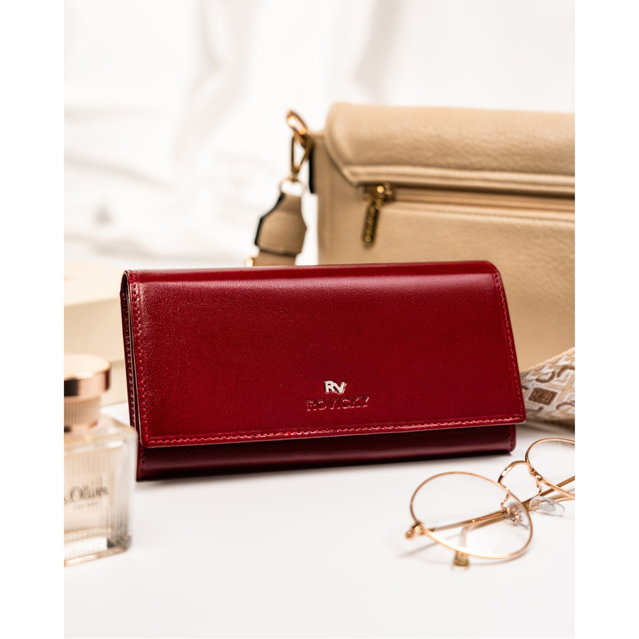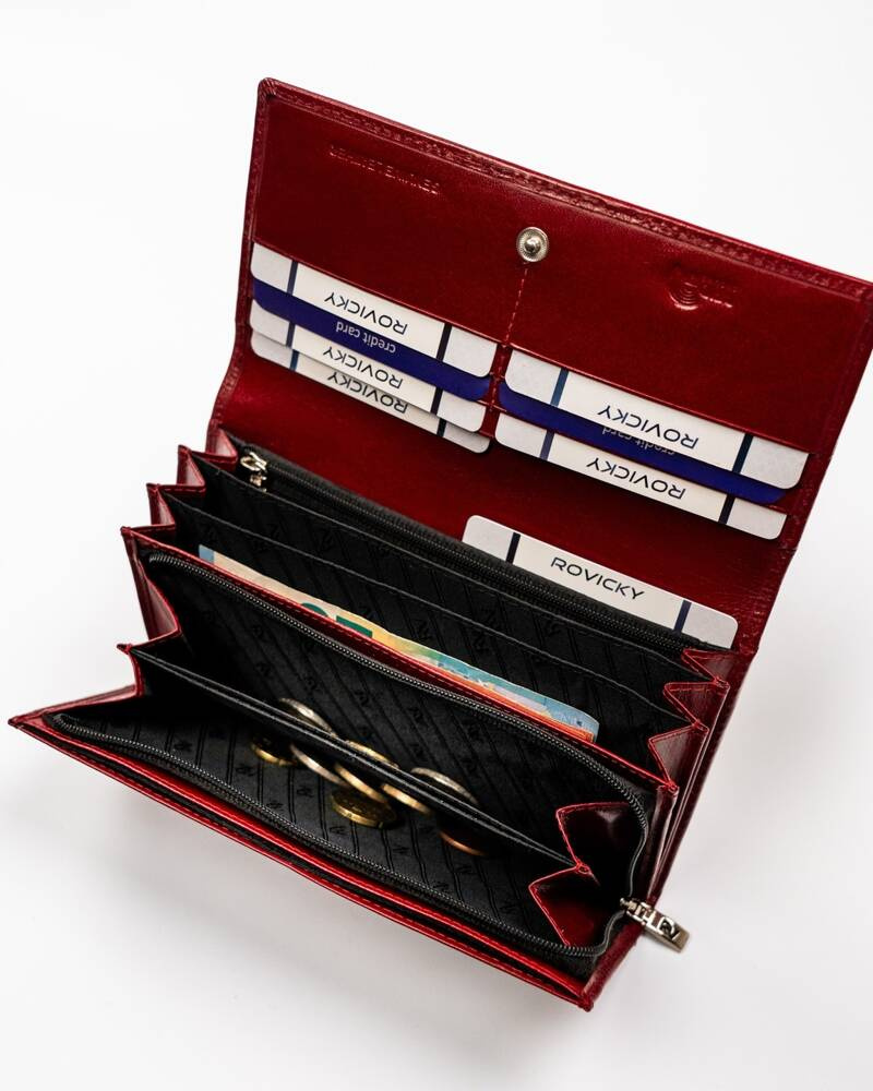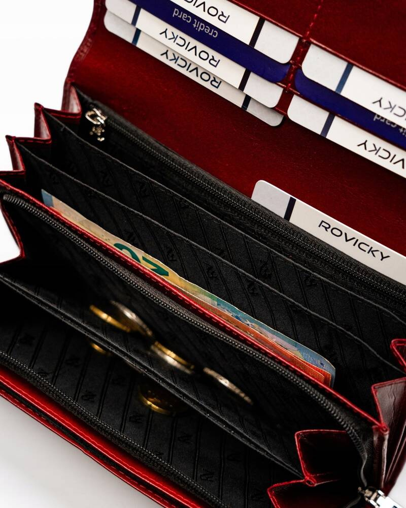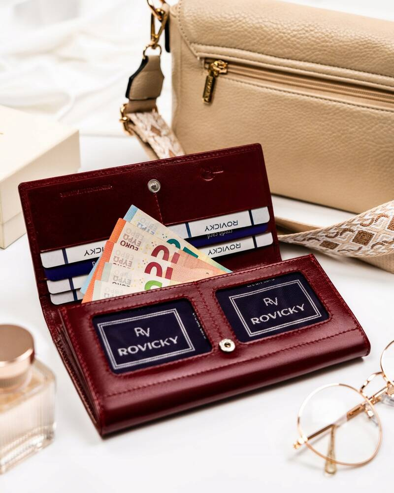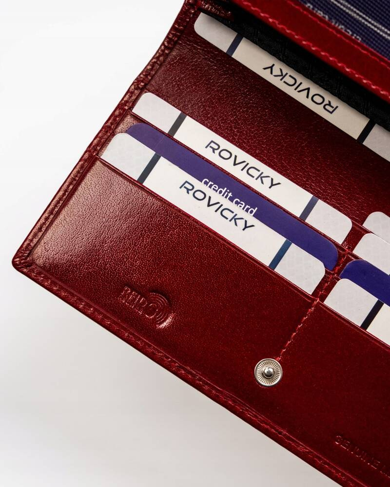 Duży, skórzany portfel damski na zatrzask z systemem RFID – Rovicky