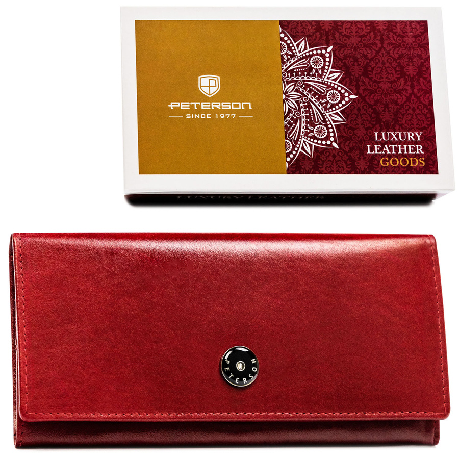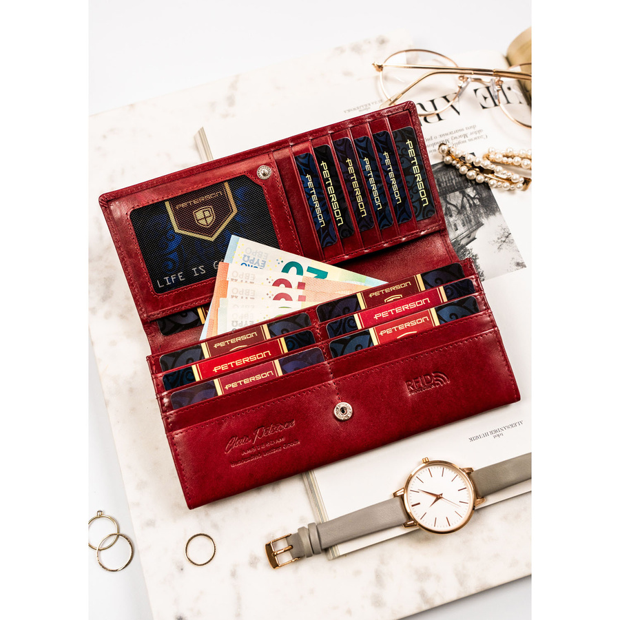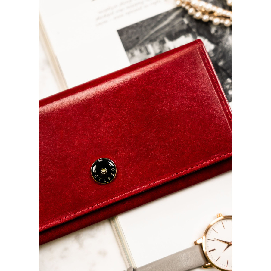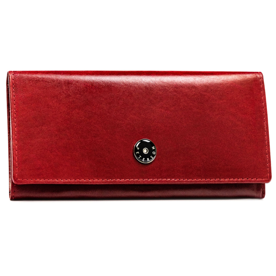 Duży, skórzany portfel damski w czerwonym kolorze zamykany na zatrzask – Peterson