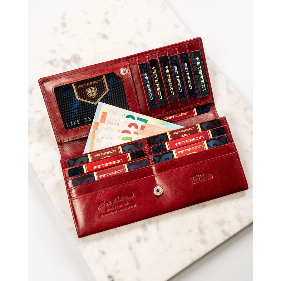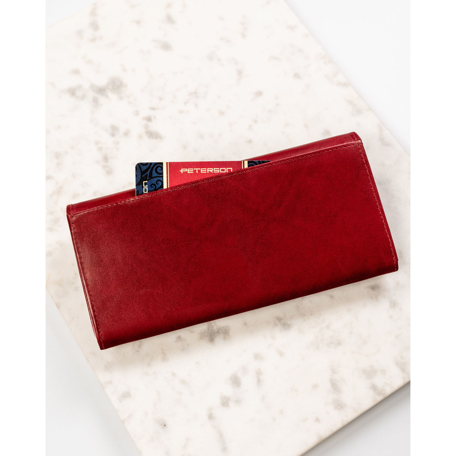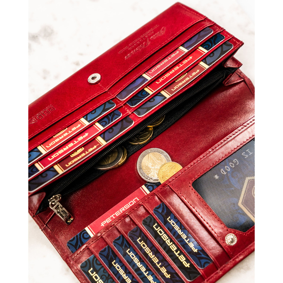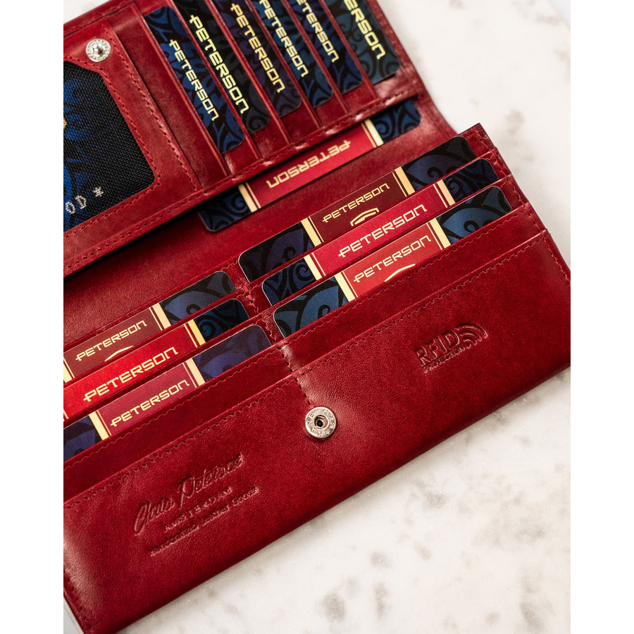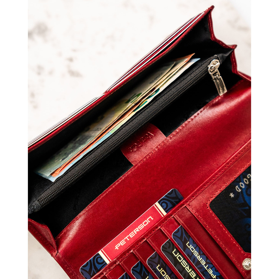 Duży, skórzany portfel damski w czerwonym kolorze zamykany na zatrzask – Peterson