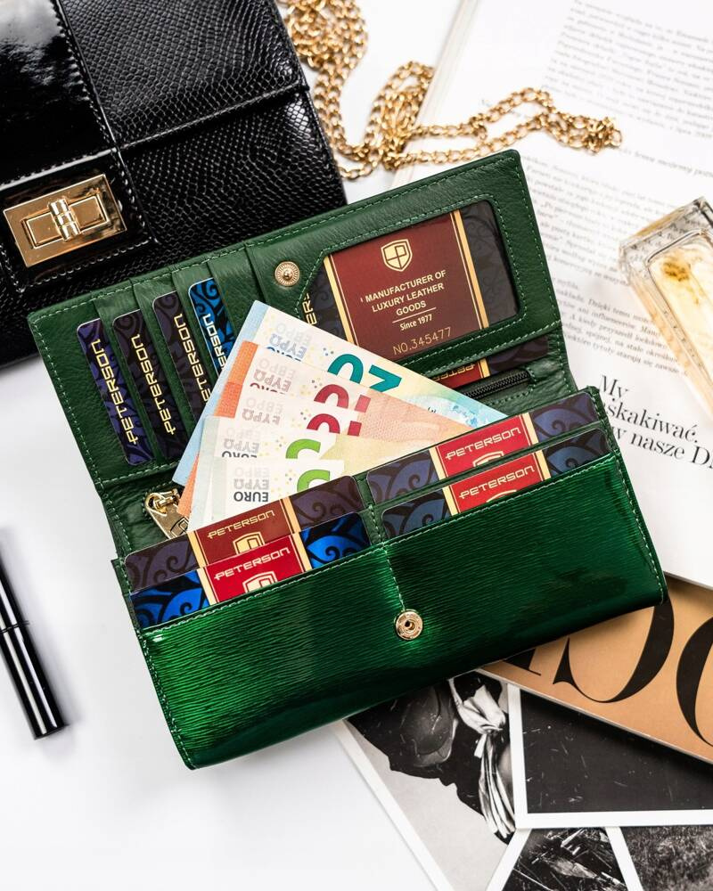 Duży, skórzany portfel damski z systemem RFID – Peterson