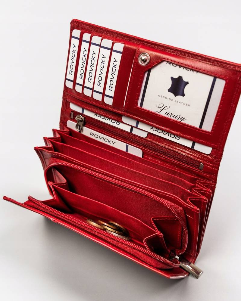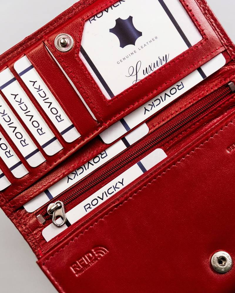 Duży, skórzany portfel damski z systemem RFID – Rovicky