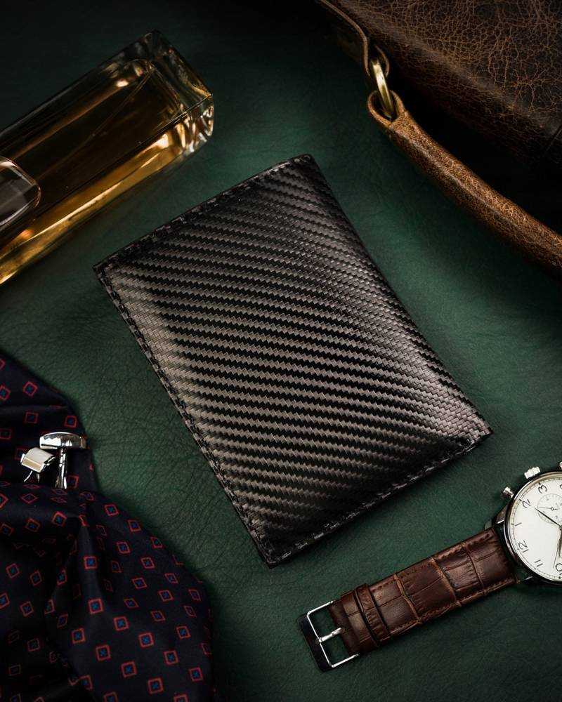 • Elegancki design | Portfel wykonany został z wysokiej jakości skóry naturalnej powleczonej z zewnątrz warstwą do złudzenia przypominającą włókno węglowe (carbon);