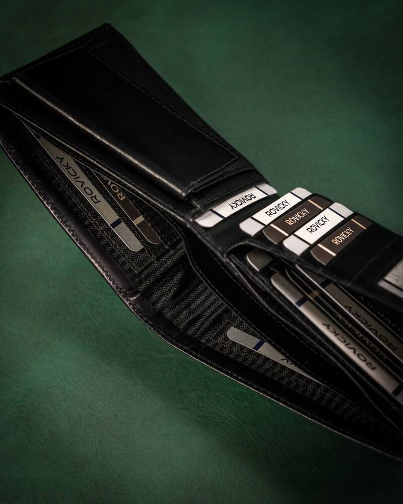 - 17 przegródek na karty, wizytówki lub dokumenty o standardowym wymiarze. Jedna z tych przegródek jest transparentna, dzięki czemu możesz przechować w niej fotografię;