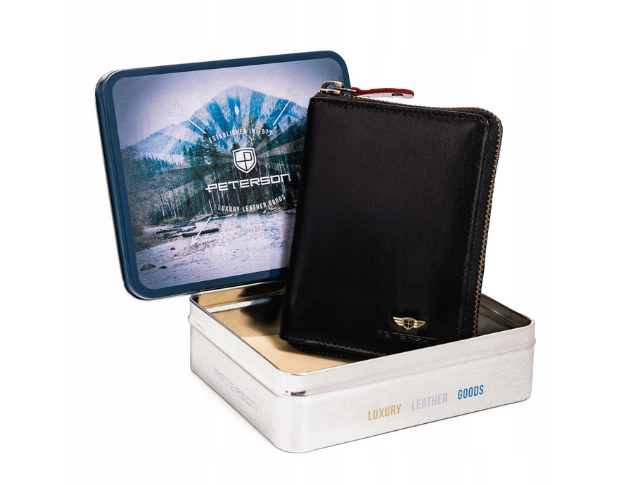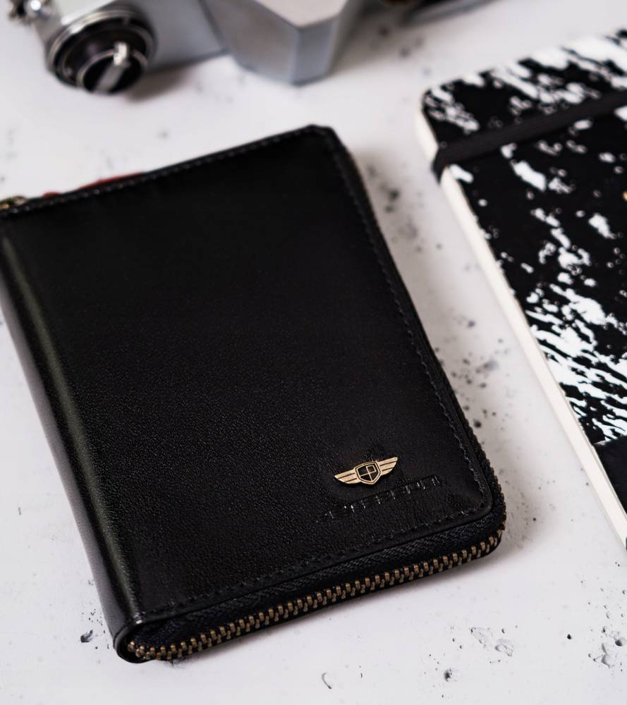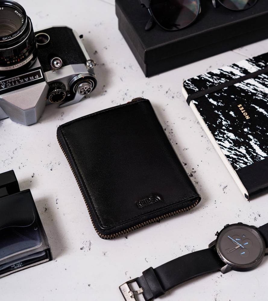 - Ponadczasowy fason dla Panów w każdym wieku | Portfel o klasycznej stylistyce. Model w orientacji pionowej zapinany na zamek błyskawiczny;
