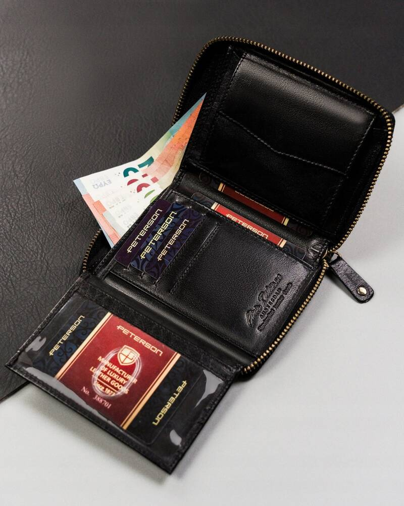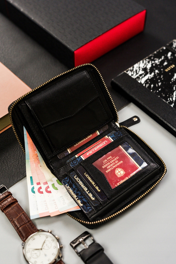 Duży, skórzany portfel męski na zamek - PetersonDuży, skórzany portfel męski na zamek – Peterson