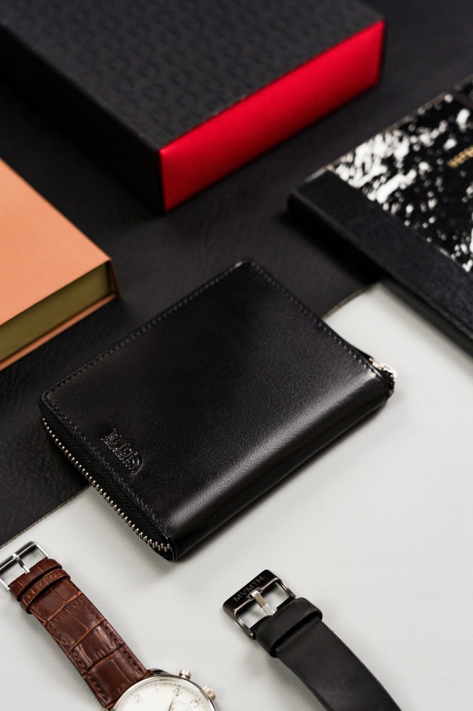 • Ponadczasowy fason dla Panów w każdym wieku | Portfel o klasycznej stylistyce. Model w orientacji pionowej zapinany solidnym zamkiem błyskawicznym;