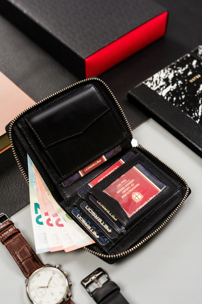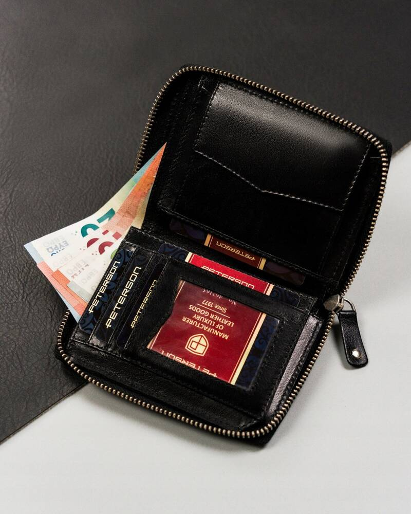 - 2 obszerne przegródki na banknoty, które pomieszczą znaczną ilość gotówki.