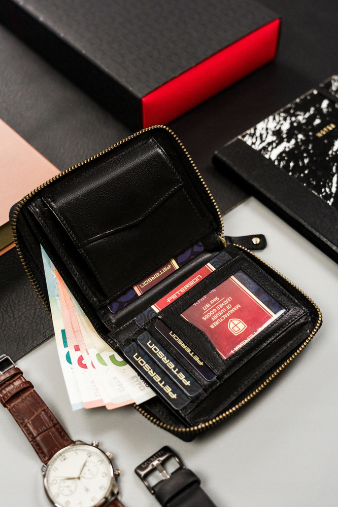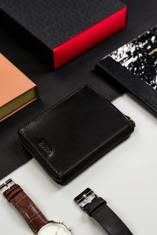 - Ponadczasowy fason dla Panów w każdym wieku | Portfel o klasycznej stylistyce. Model w orientacji pionowej zapinany solidnym zamkiem błyskawicznym;