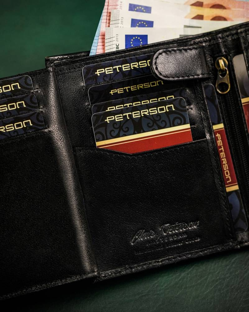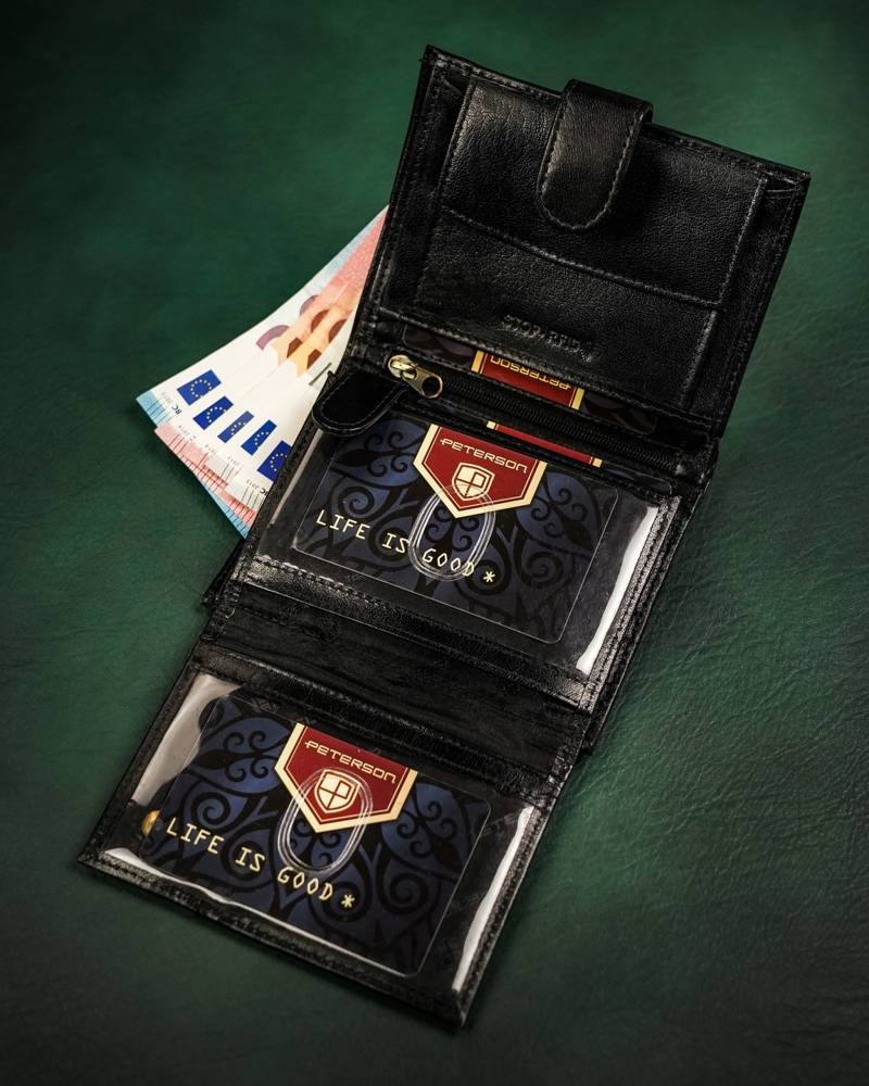 Duży, skórzany portfel męski na zatrzask - PetersonDuży, skórzany portfel męski na zatrzask – Peterson