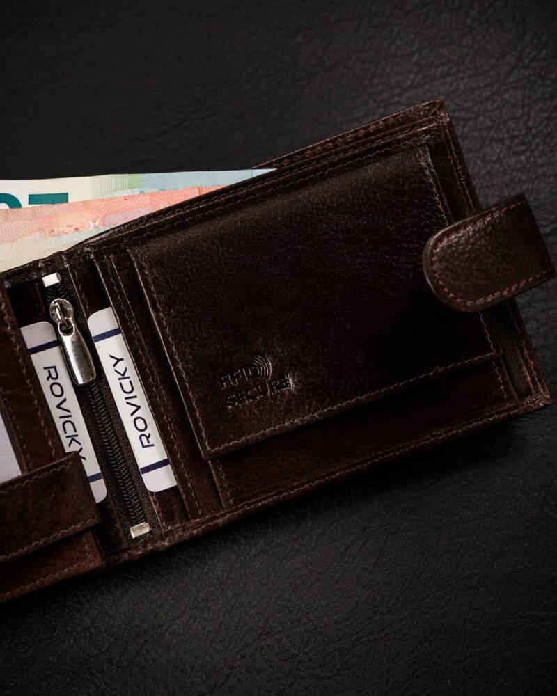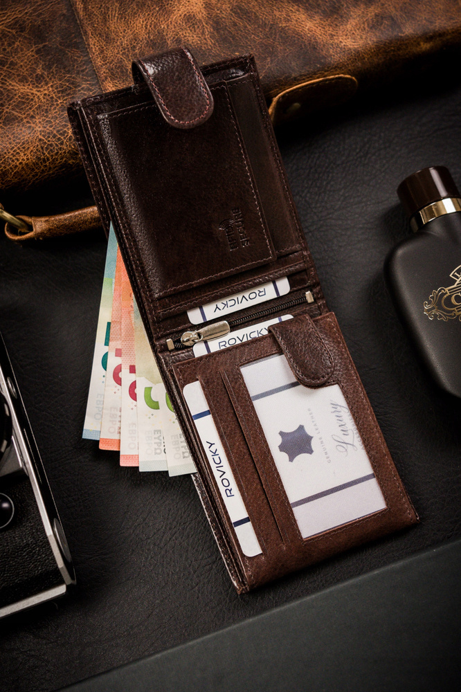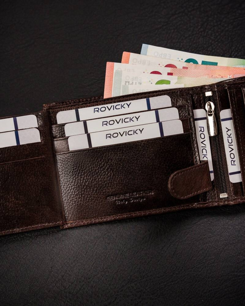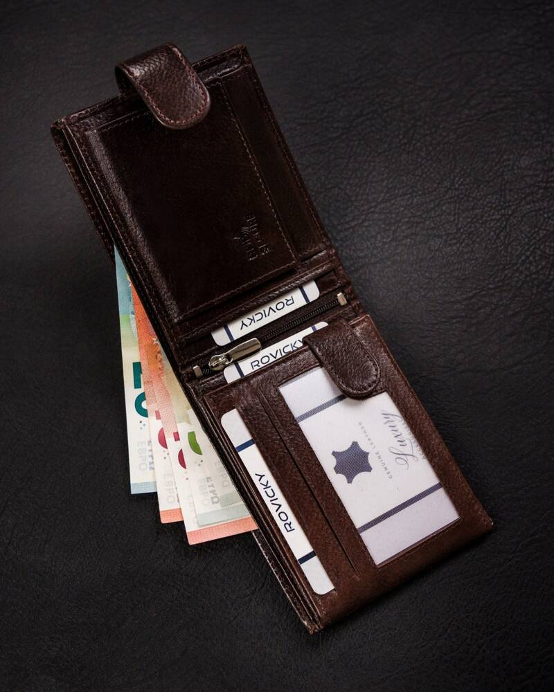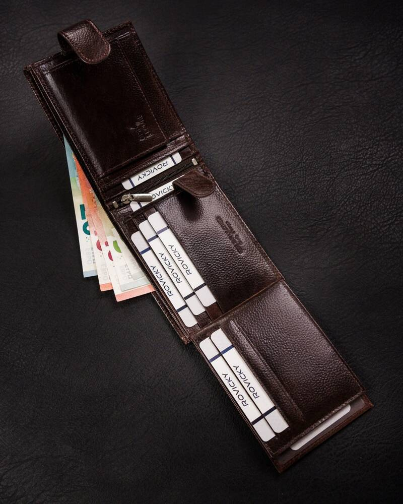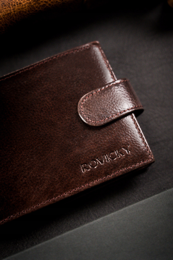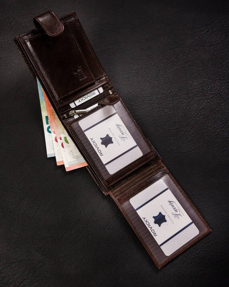 Duży, skórzany portfel męski na zatrzask – Rovicky