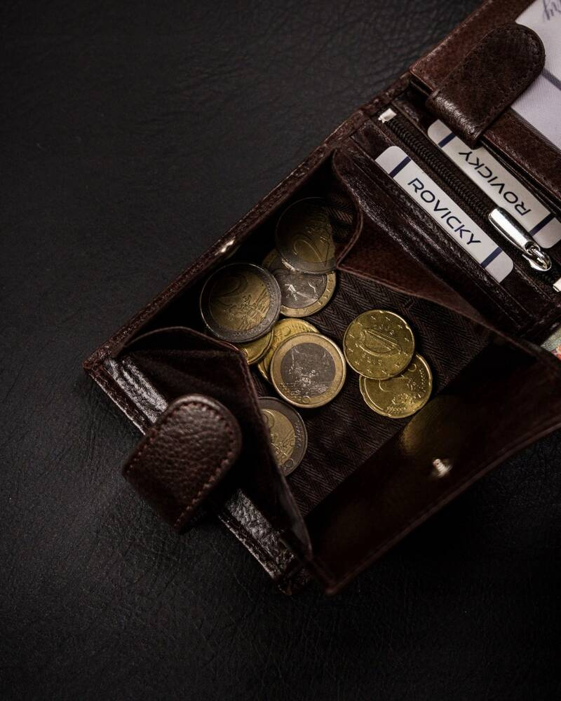 - banknoty schowasz do 2 otwartych kieszonek przeszytych po całej długości portfela.