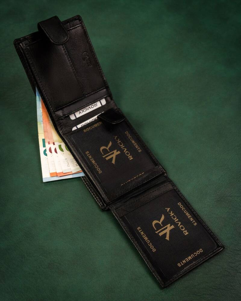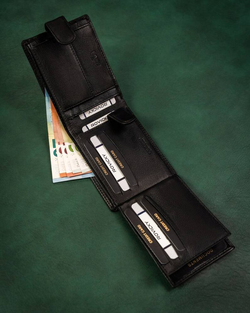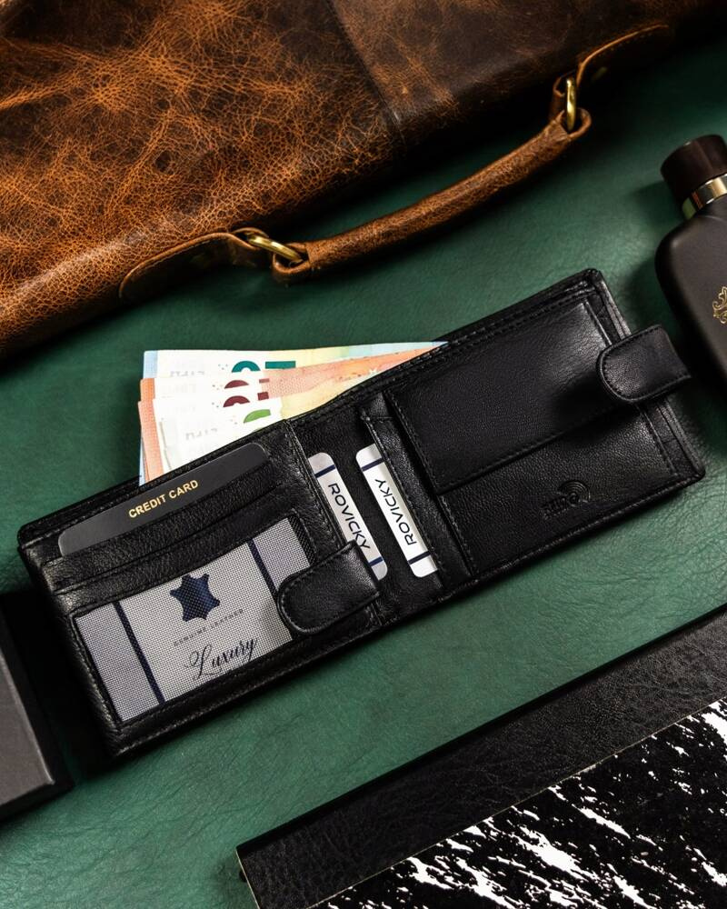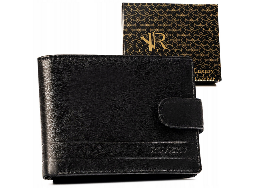 Duży, skórzany portfel męski na zatrzask - RovickyDuży, skórzany portfel męski na zatrzask – Rovicky