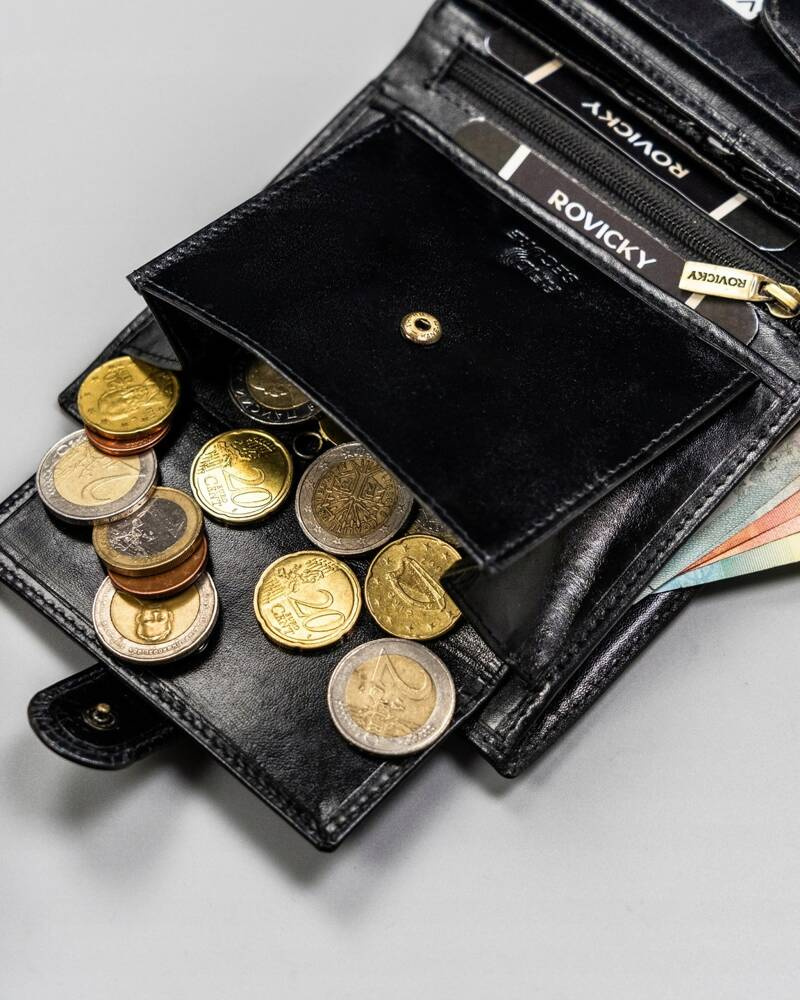 - monety schowasz do 1 sporej kieszonki zapinanej mocnym zatrzaskiem;