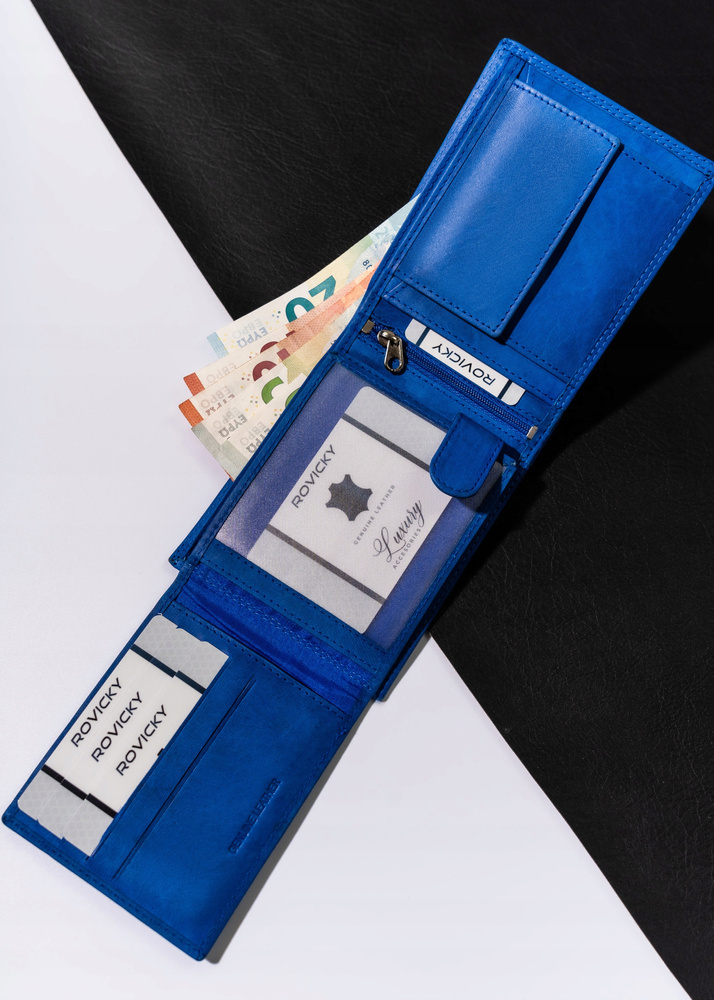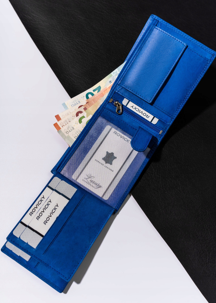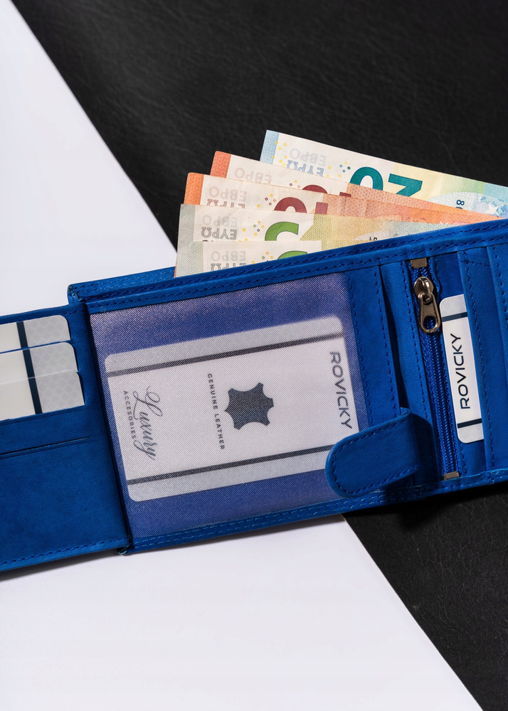 - 2 przegródki na banknoty pozwalają na przechowywanie waluty w wygodny sposób i łatwo dostępny.