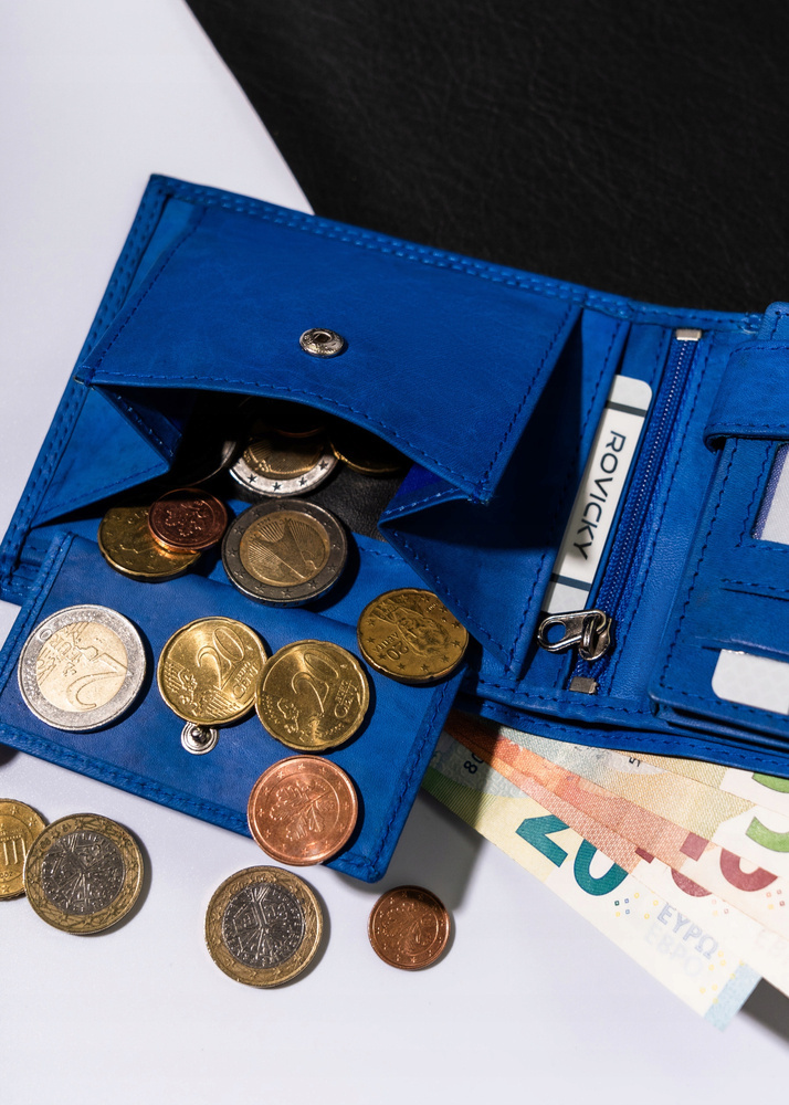 - Specjalna kieszonka na bilon zamykana na zatrzask, umożliwia bezpieczne przechowywanie monet.