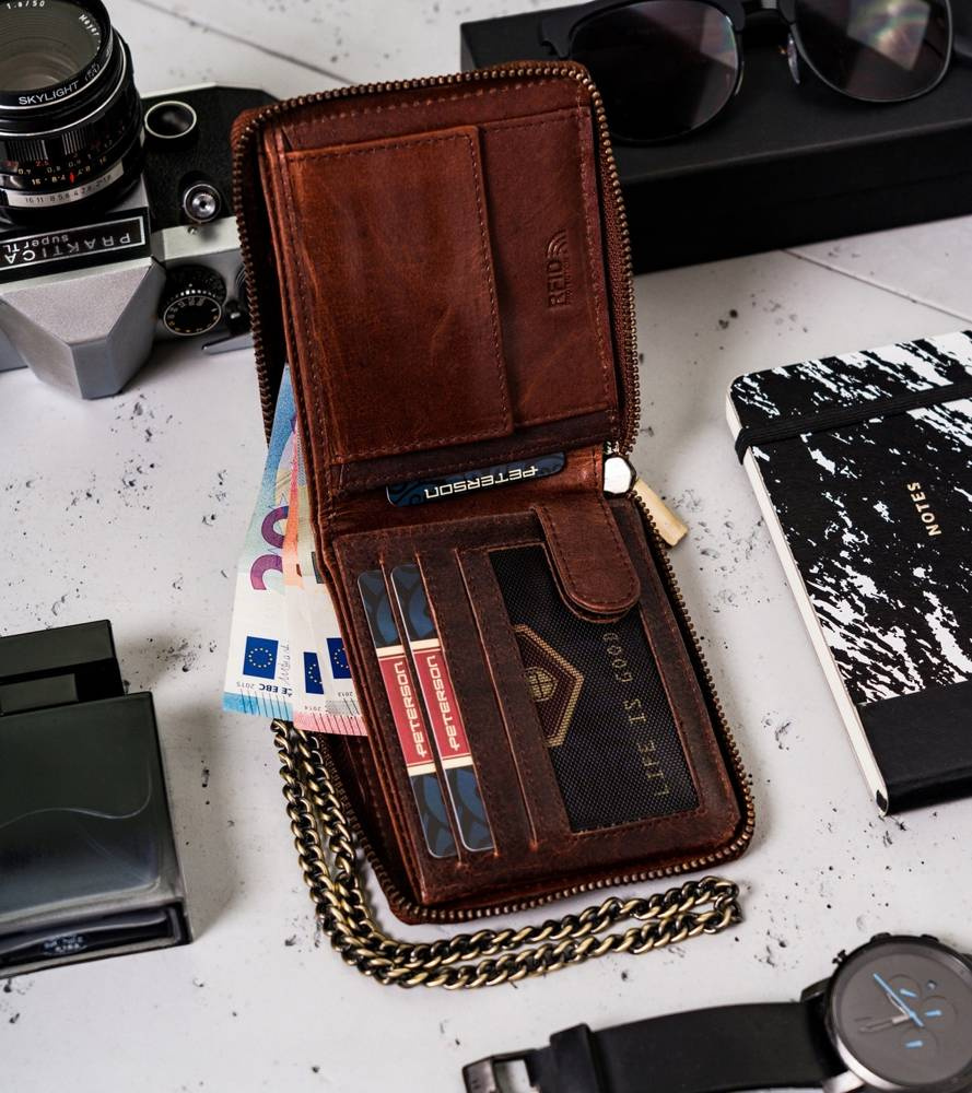 Duży, skórzany portfel męski z łańcuchem — Peterson